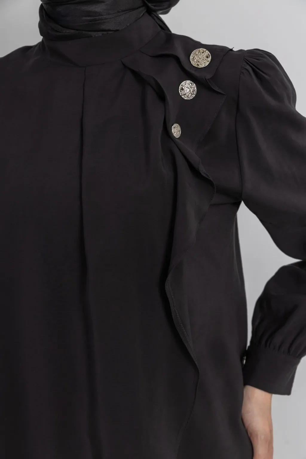 Letafet Önü Volan Detaylı Pantolonlu Takım - Siyah - (asorti: M-xxl)