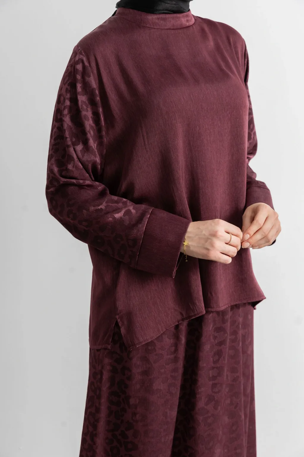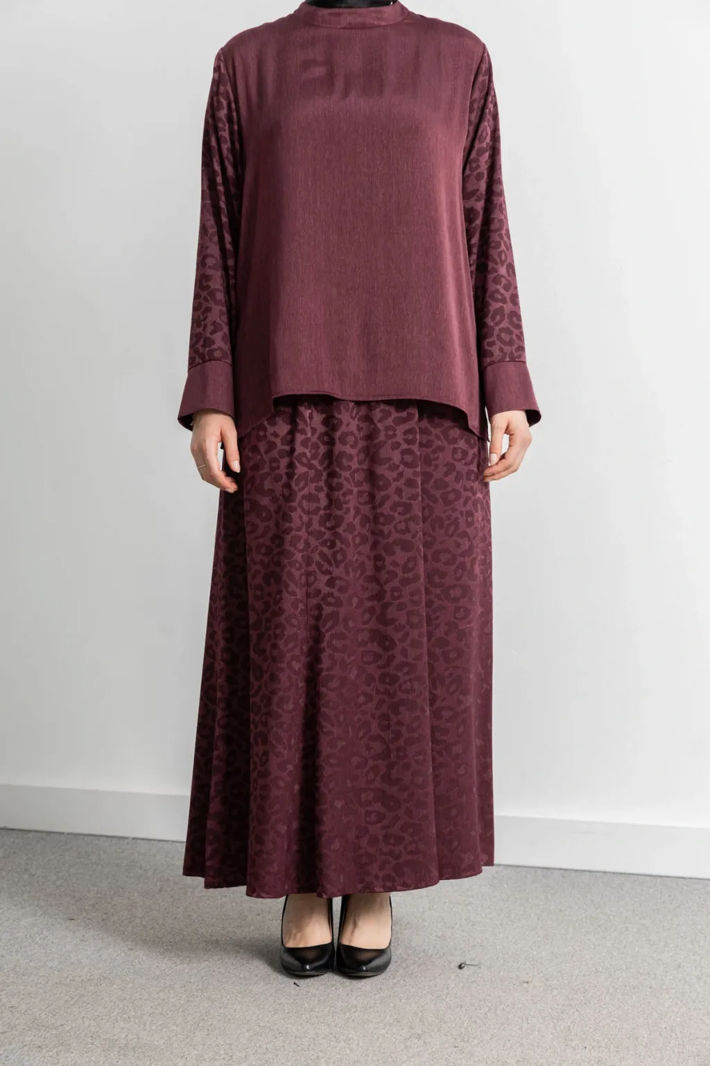 Letafet Plus Desenli Etek Takım - Bordo - Leopar - (asorti: 46-52)