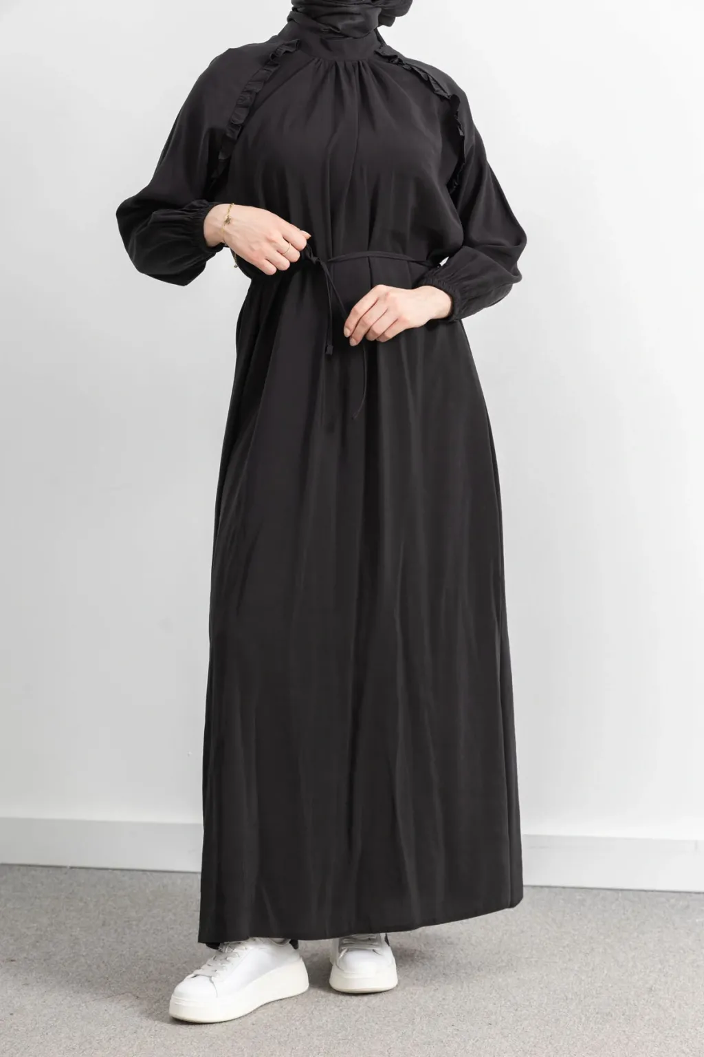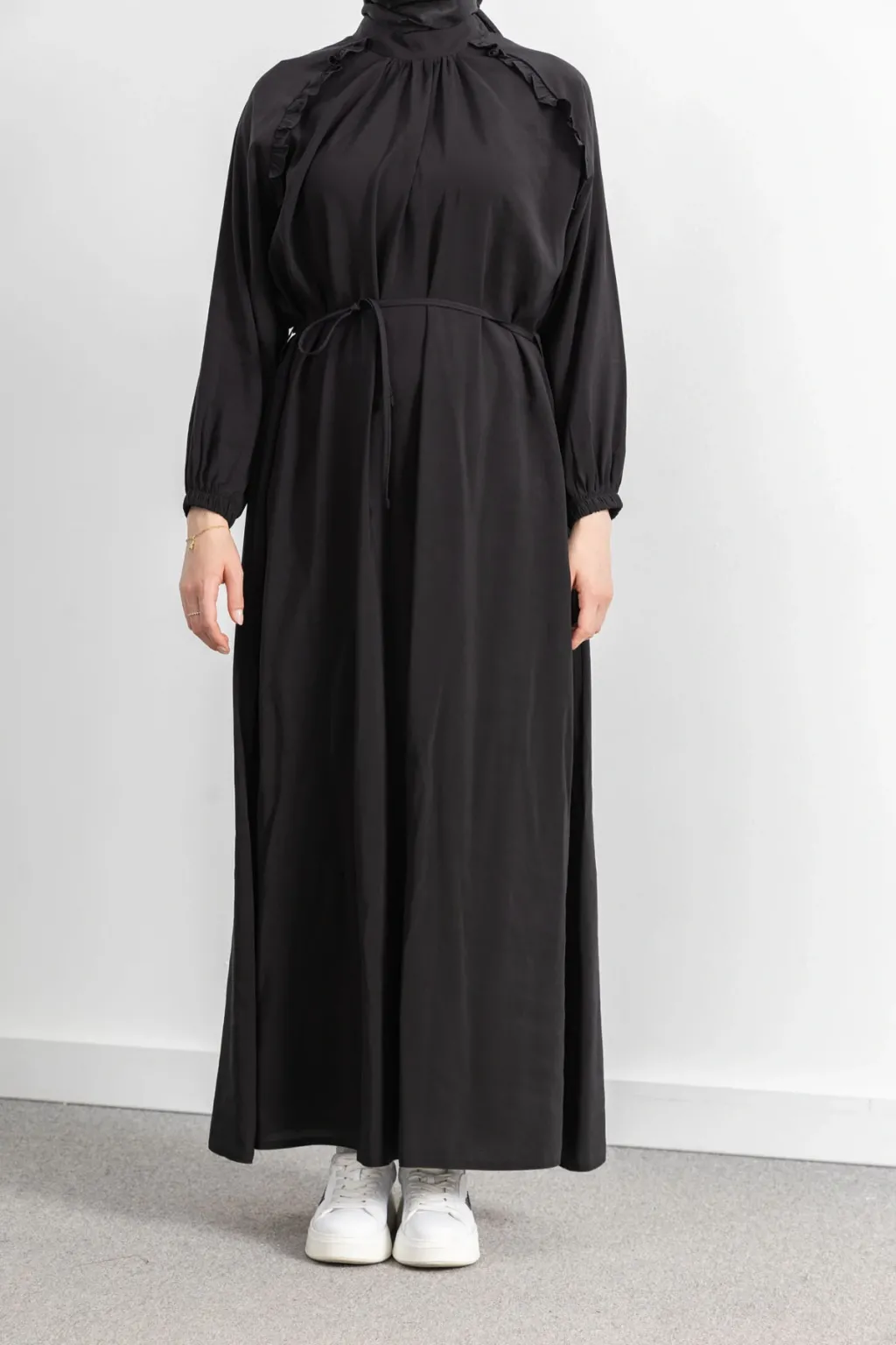Letafet Reglan Kol Fırfır Detaylı Elbise - Siyah - (asorti: 46-52)