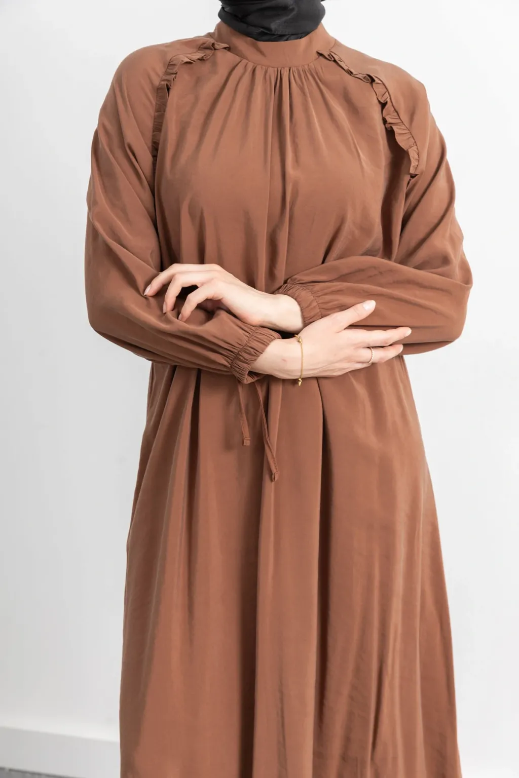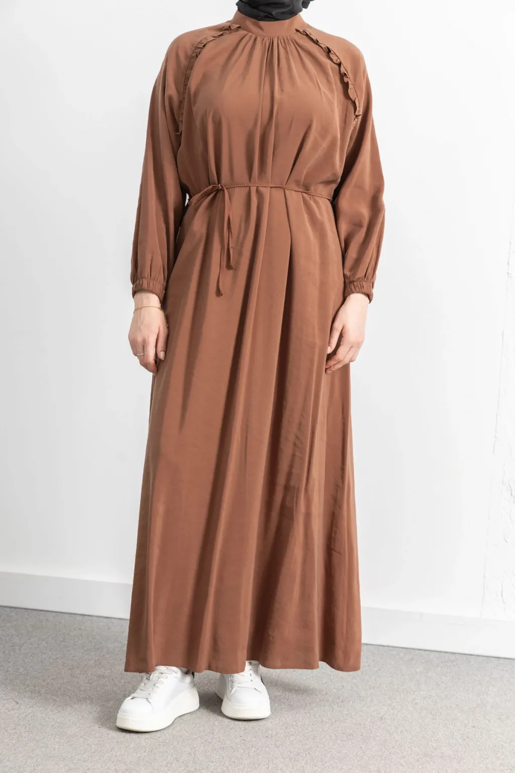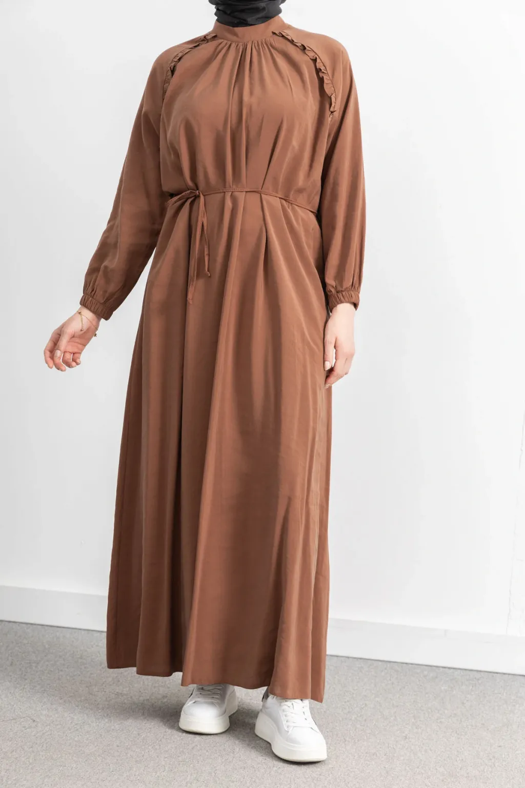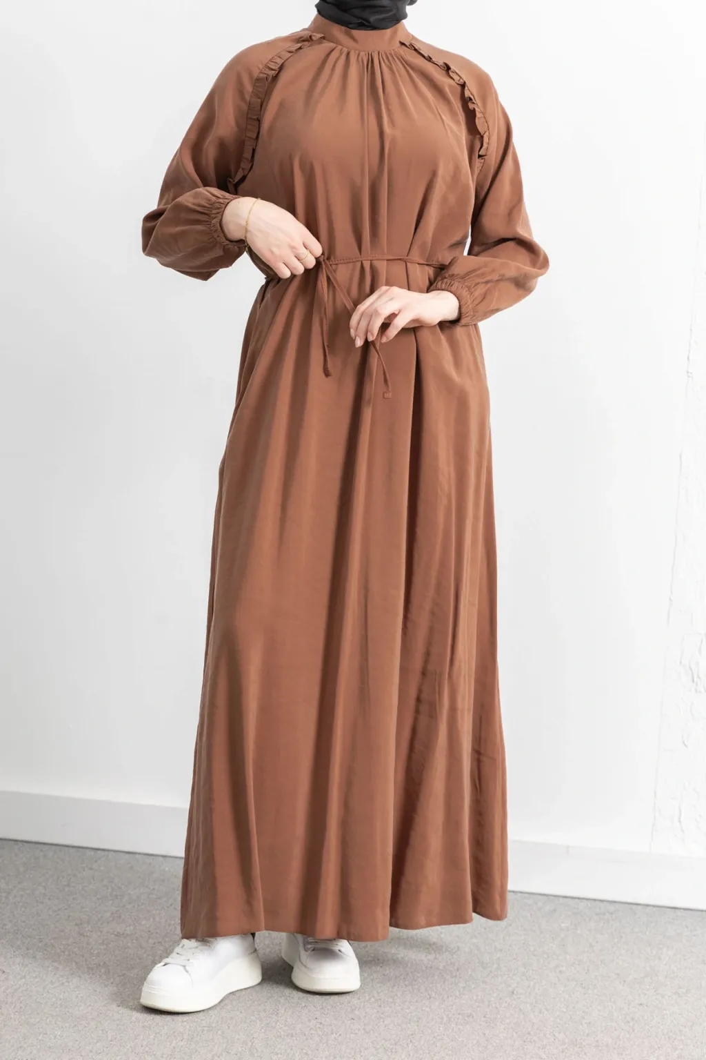 Letafet Reglan Kol Fırfır Detaylı Elbise - Taba - (asorti: 46-52)