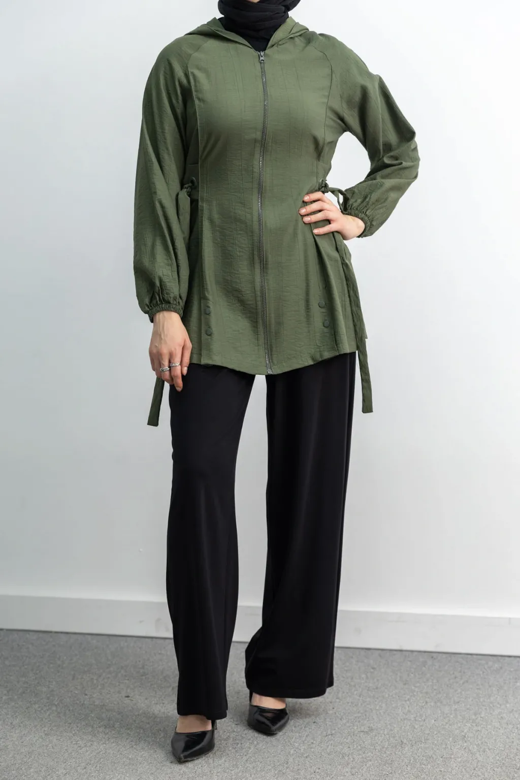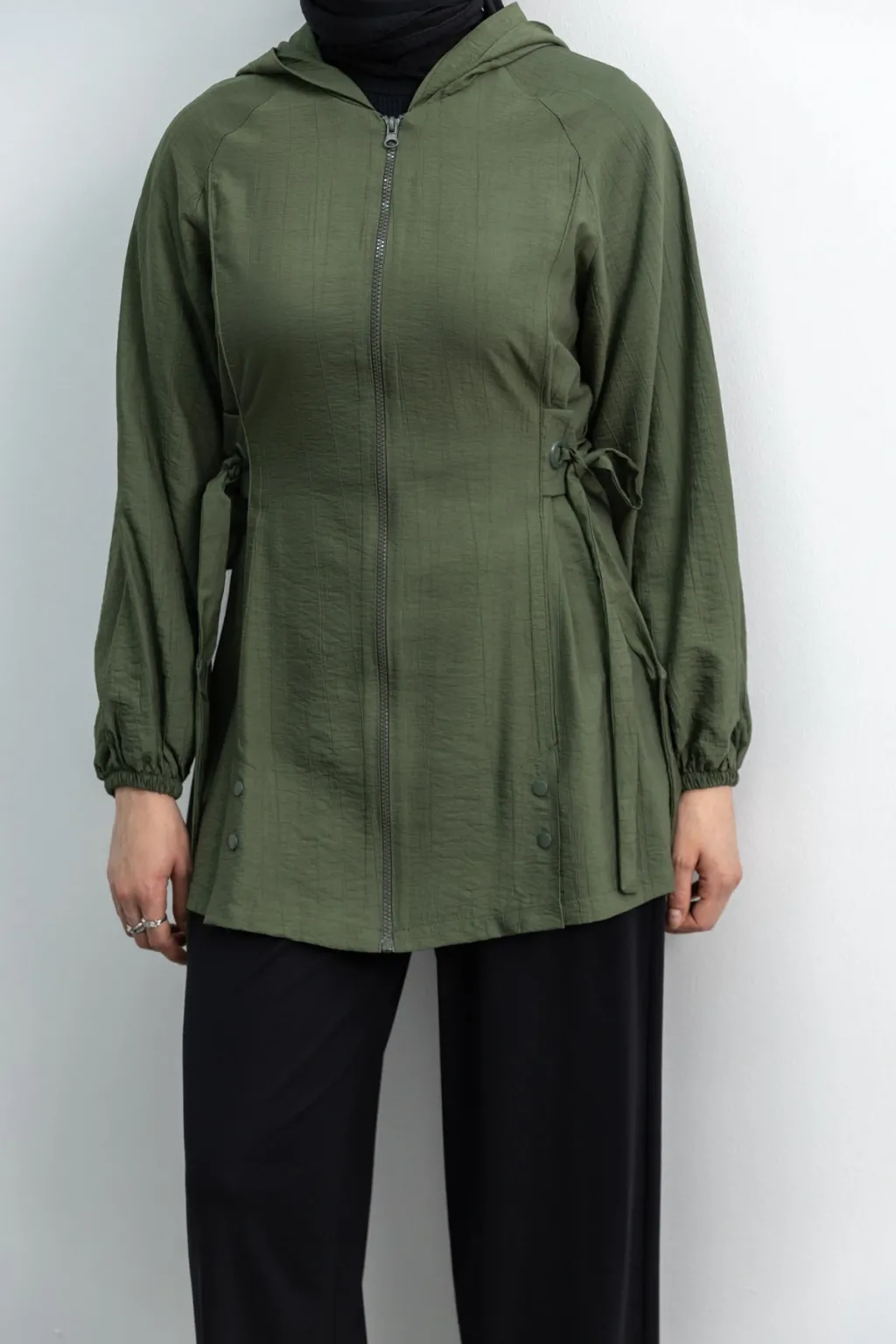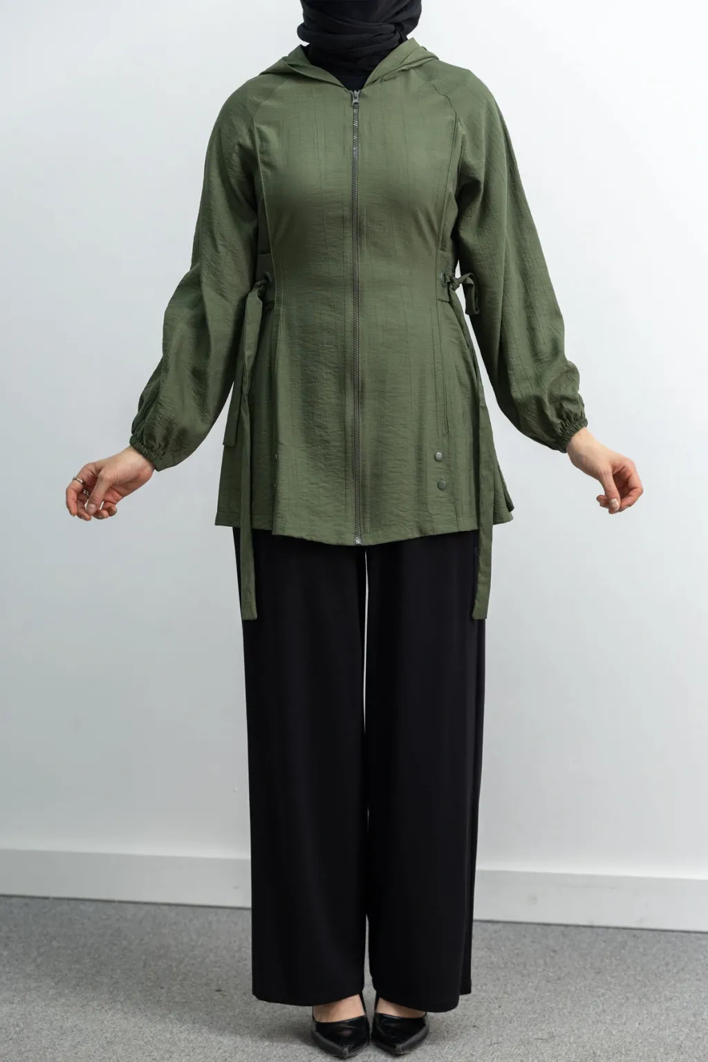 Letafet Şerit Detaylı Kapüşonlu Fermuarlı Ceket - Haki - (asorti: S-xl)