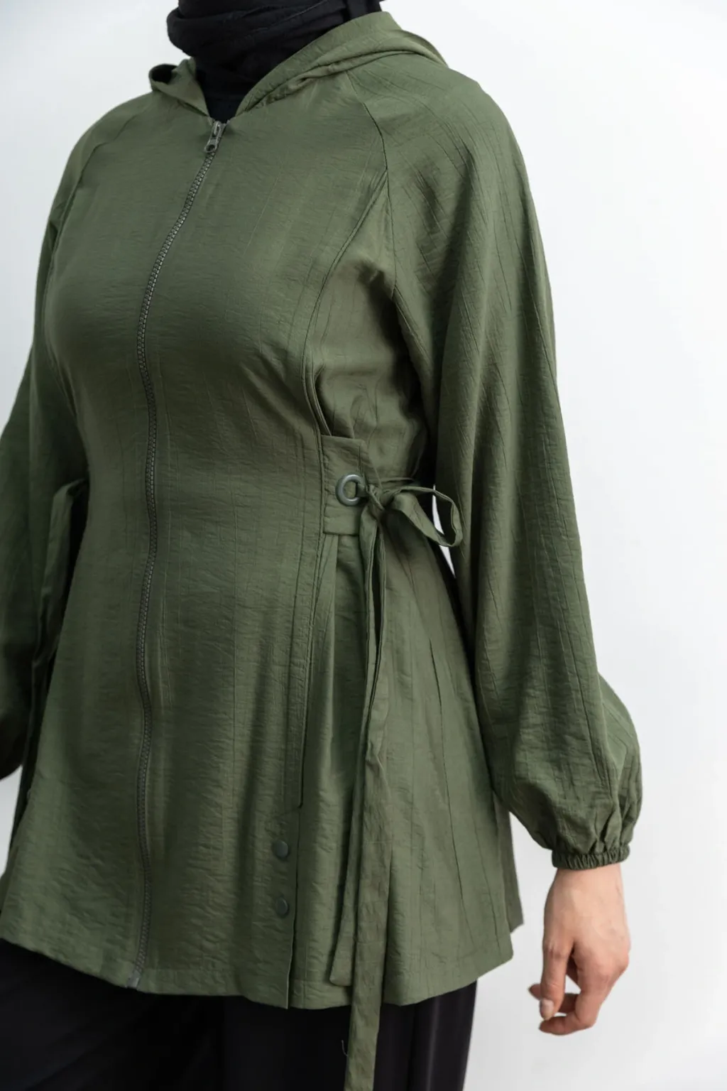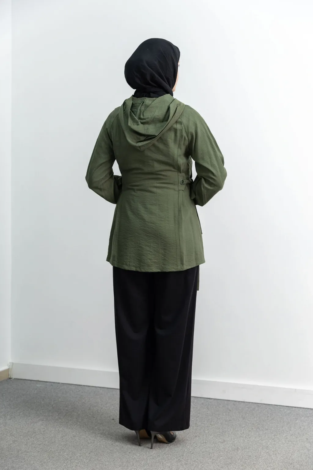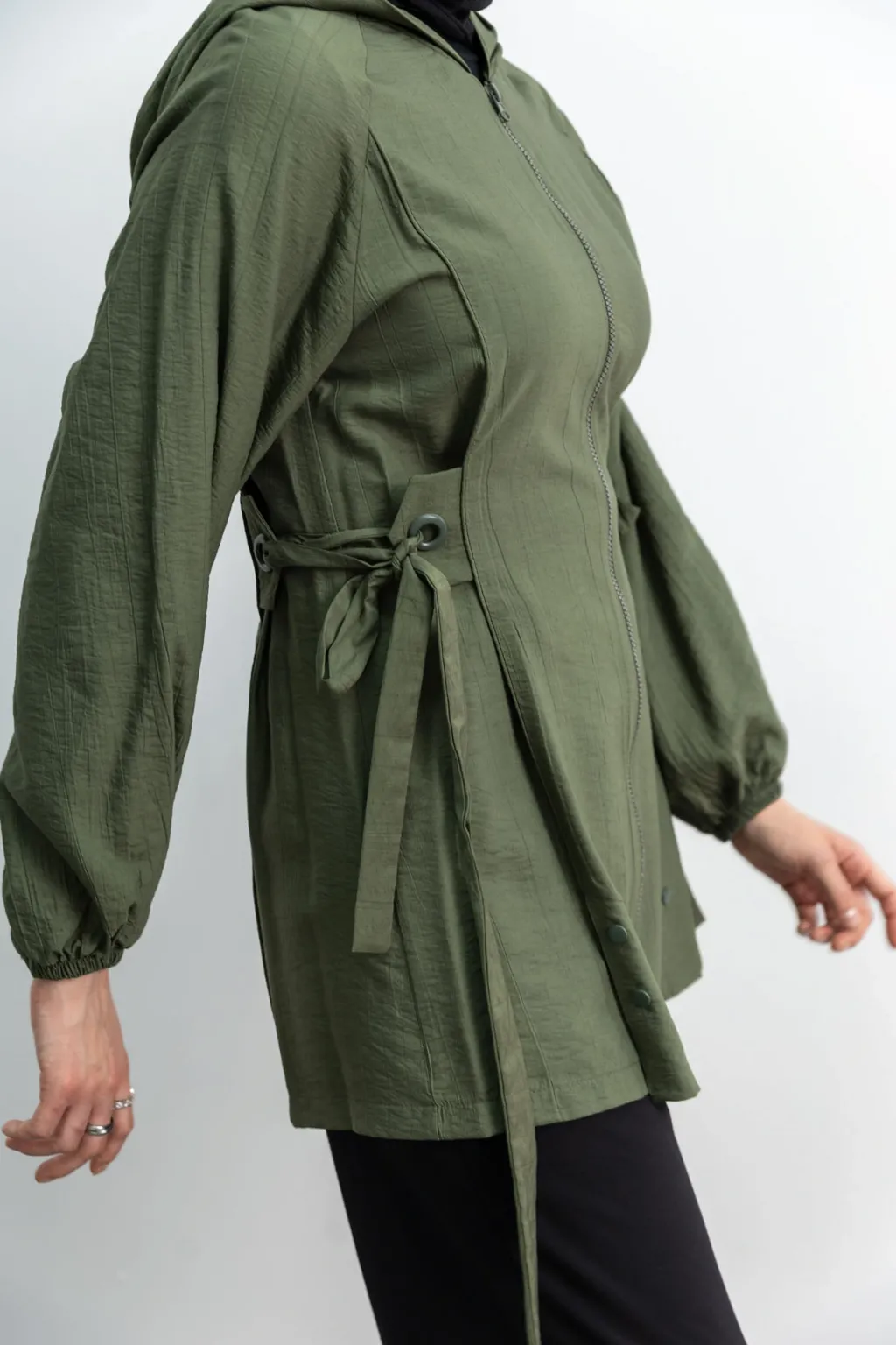 Letafet Şerit Detaylı Kapüşonlu Fermuarlı Ceket - Haki - (asorti: S-xl)