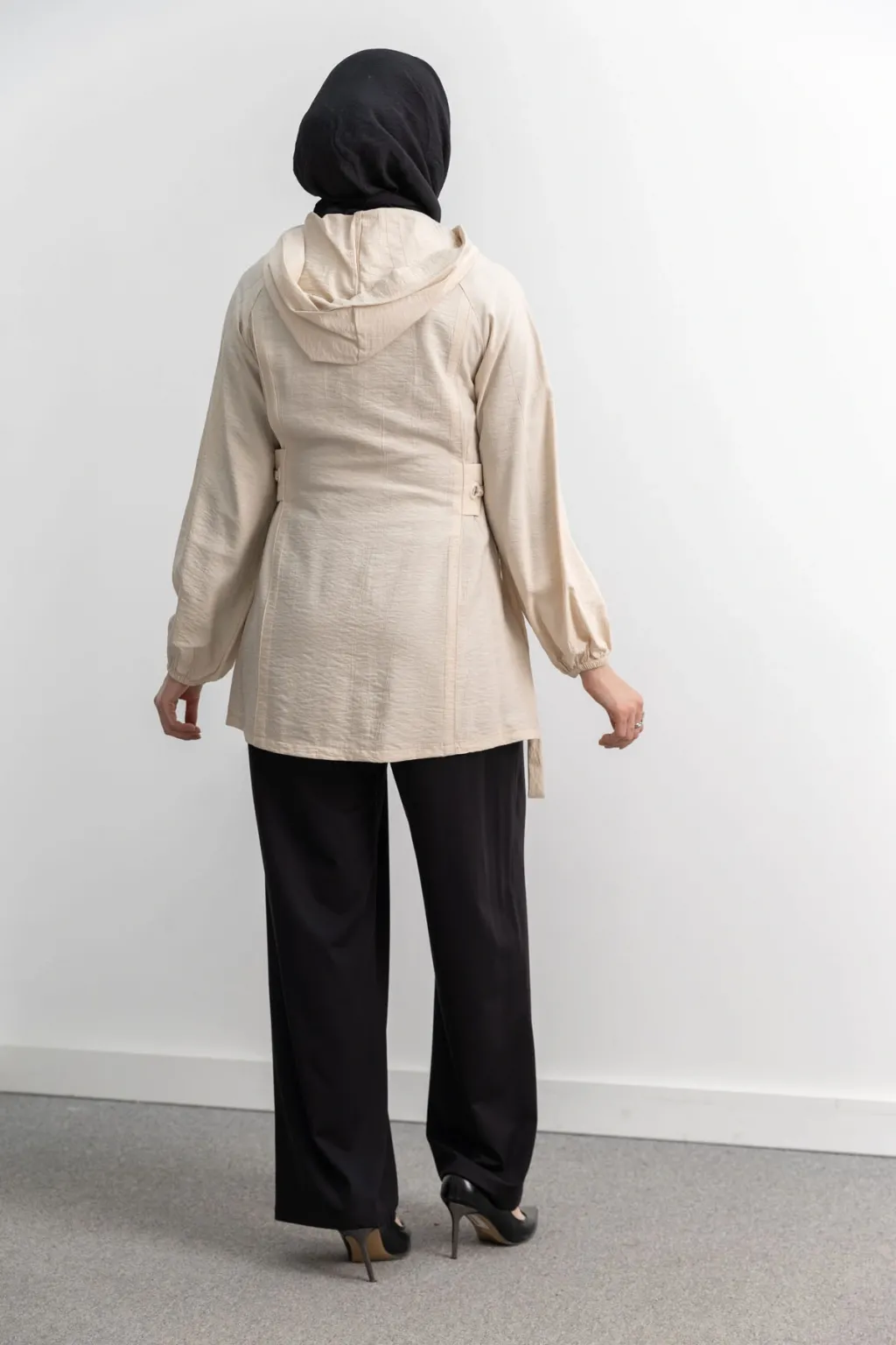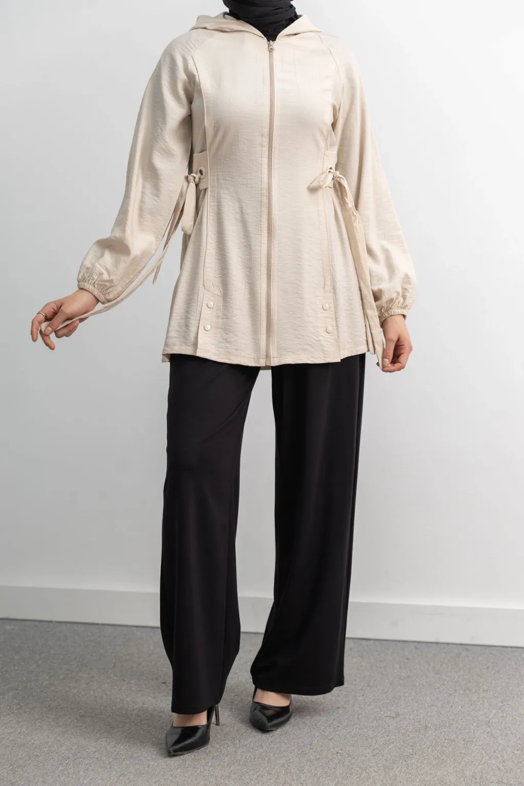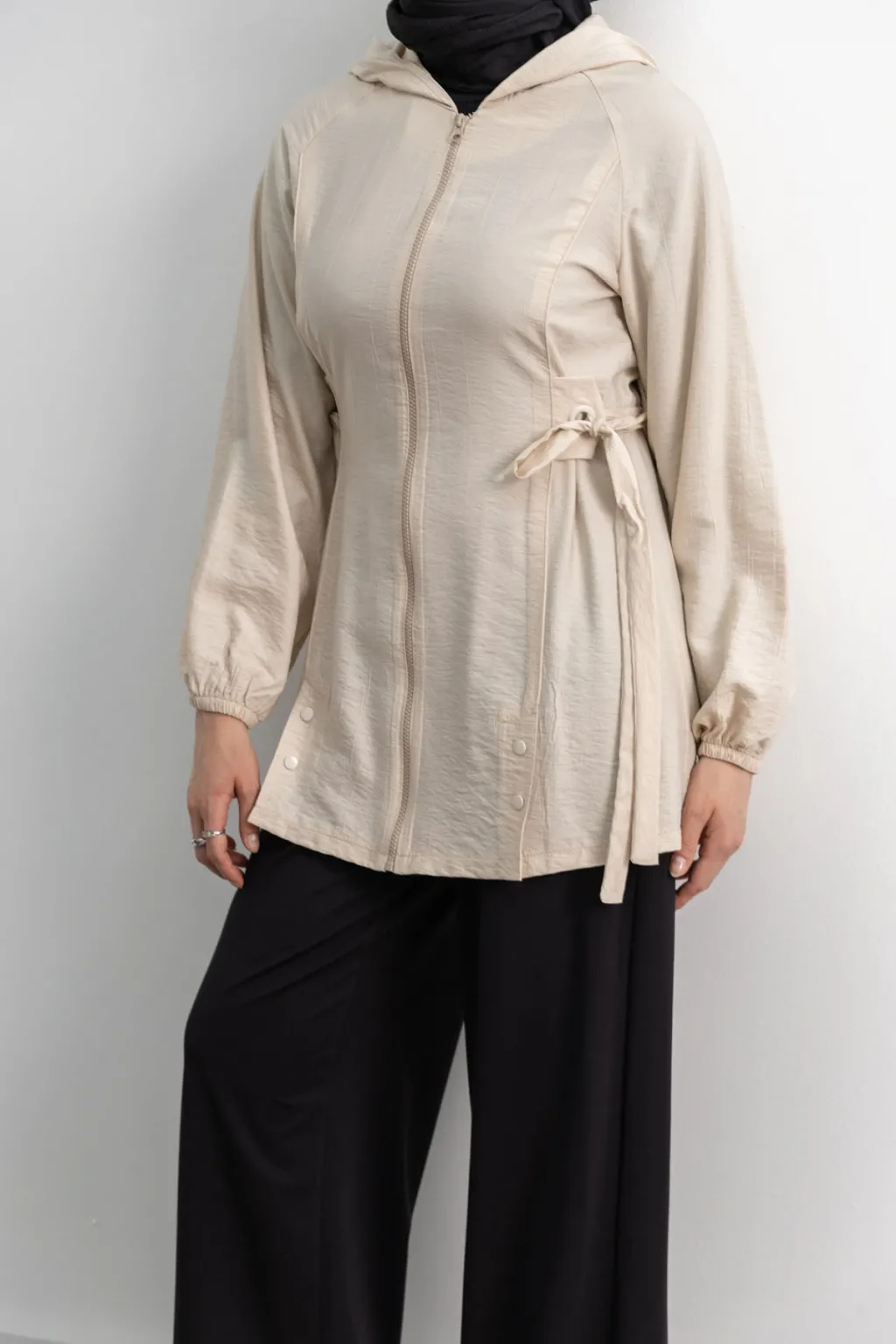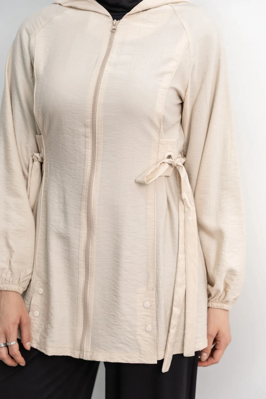 Letafet Şerit Detaylı Kapüşonlu Fermuarlı Ceket - Krem - (asorti: S-xl)
