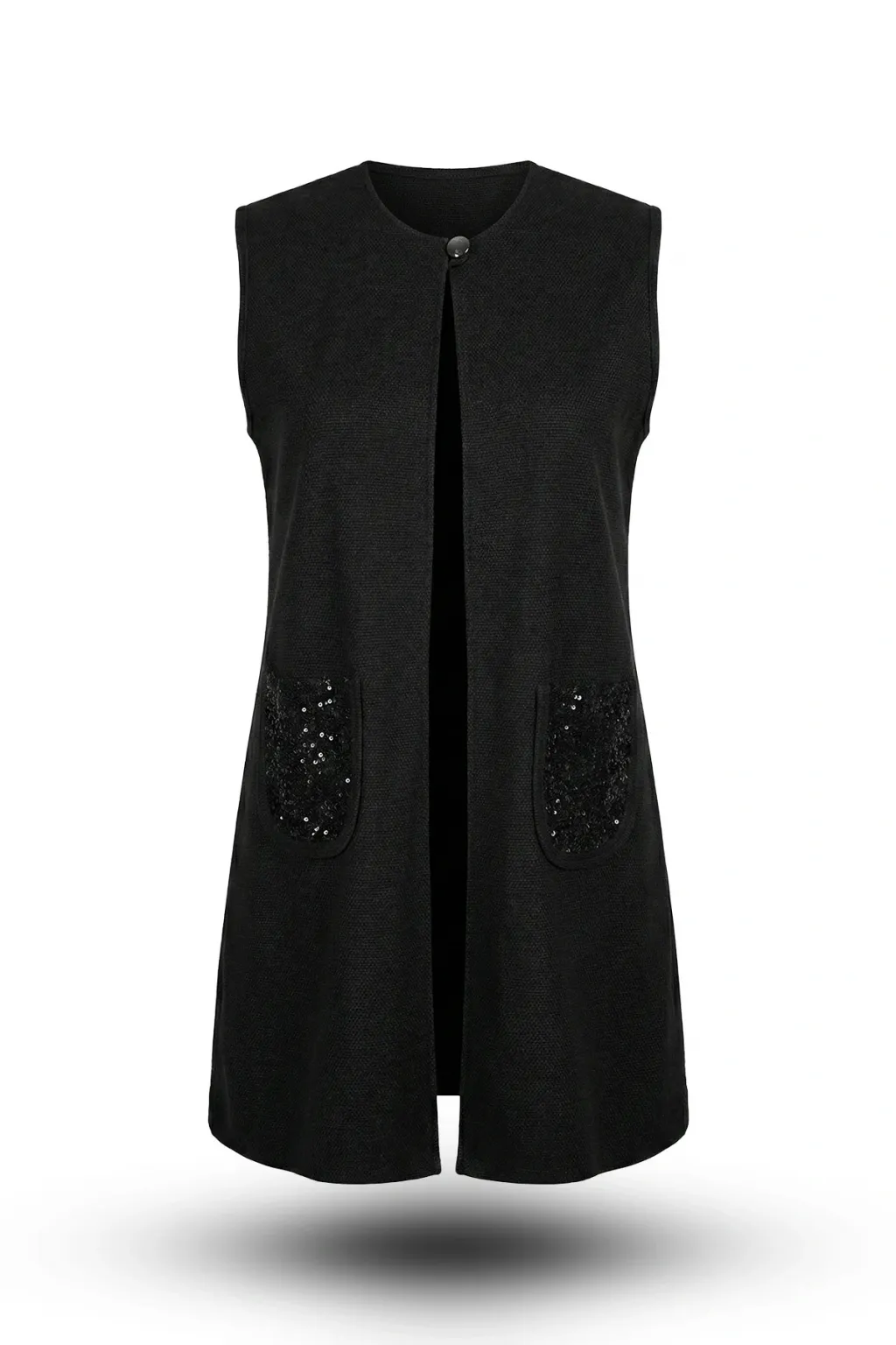 BUĞRA UZUN YELEK - SİYAH - (Asorti: 4-6)