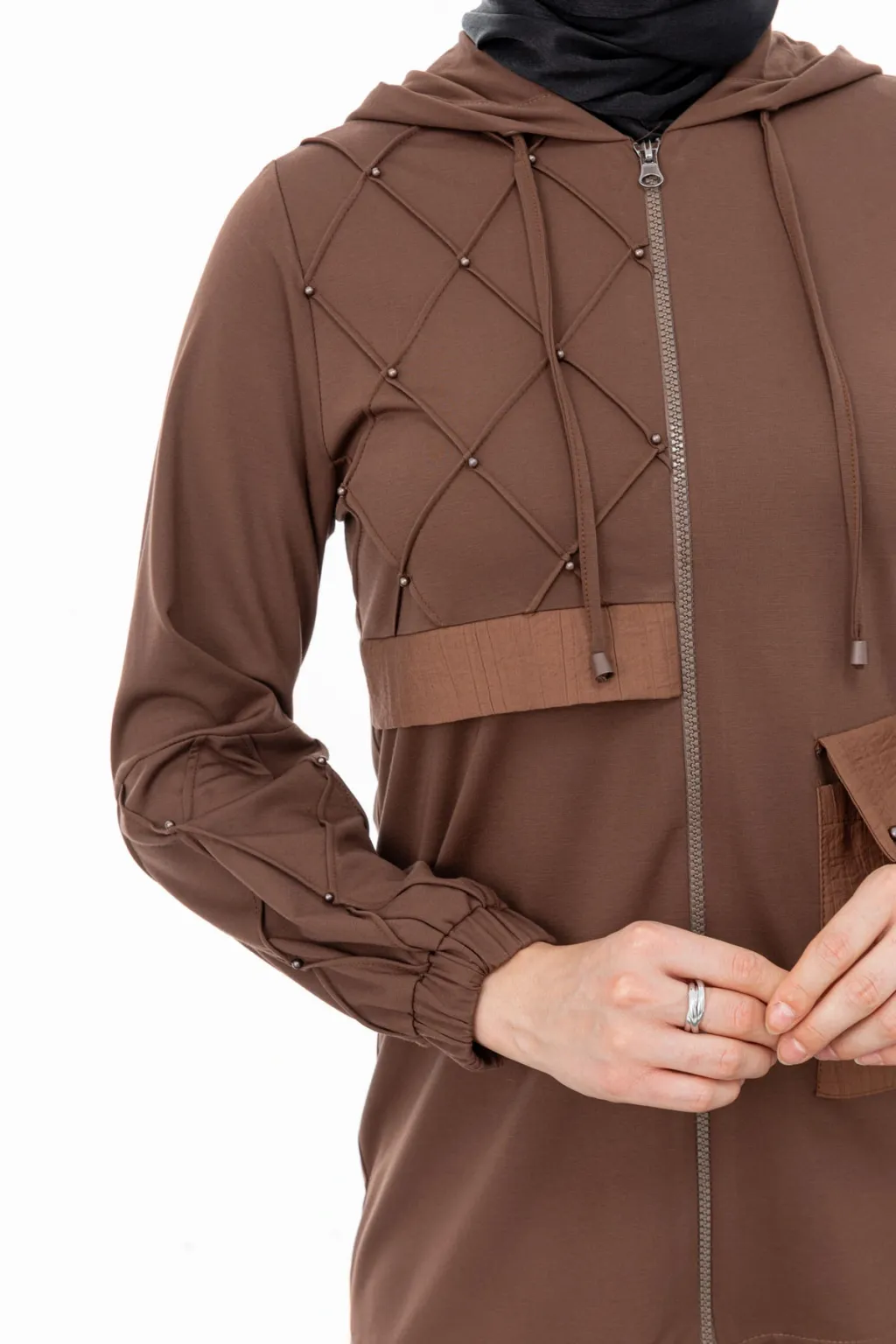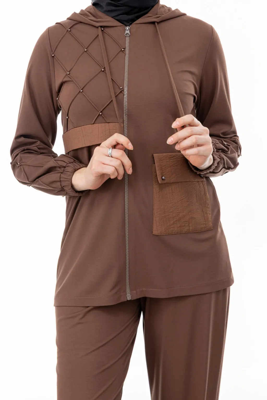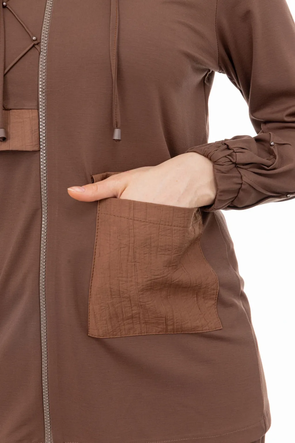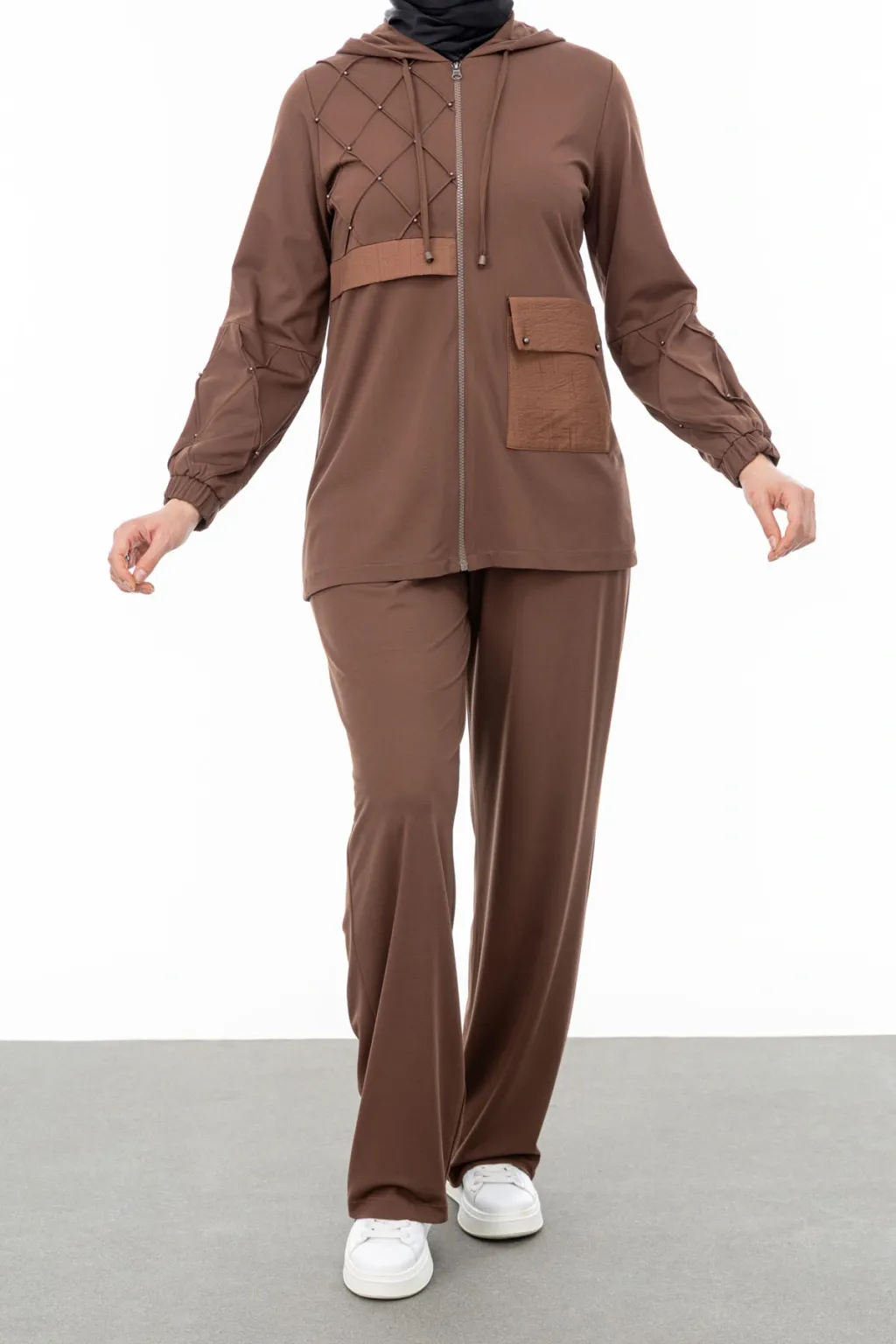 CEP KAPAKLI ÖNÜ FERMUARLI PANTOLONLU TAKIM - KAHVE - (Asorti: M-XXL)