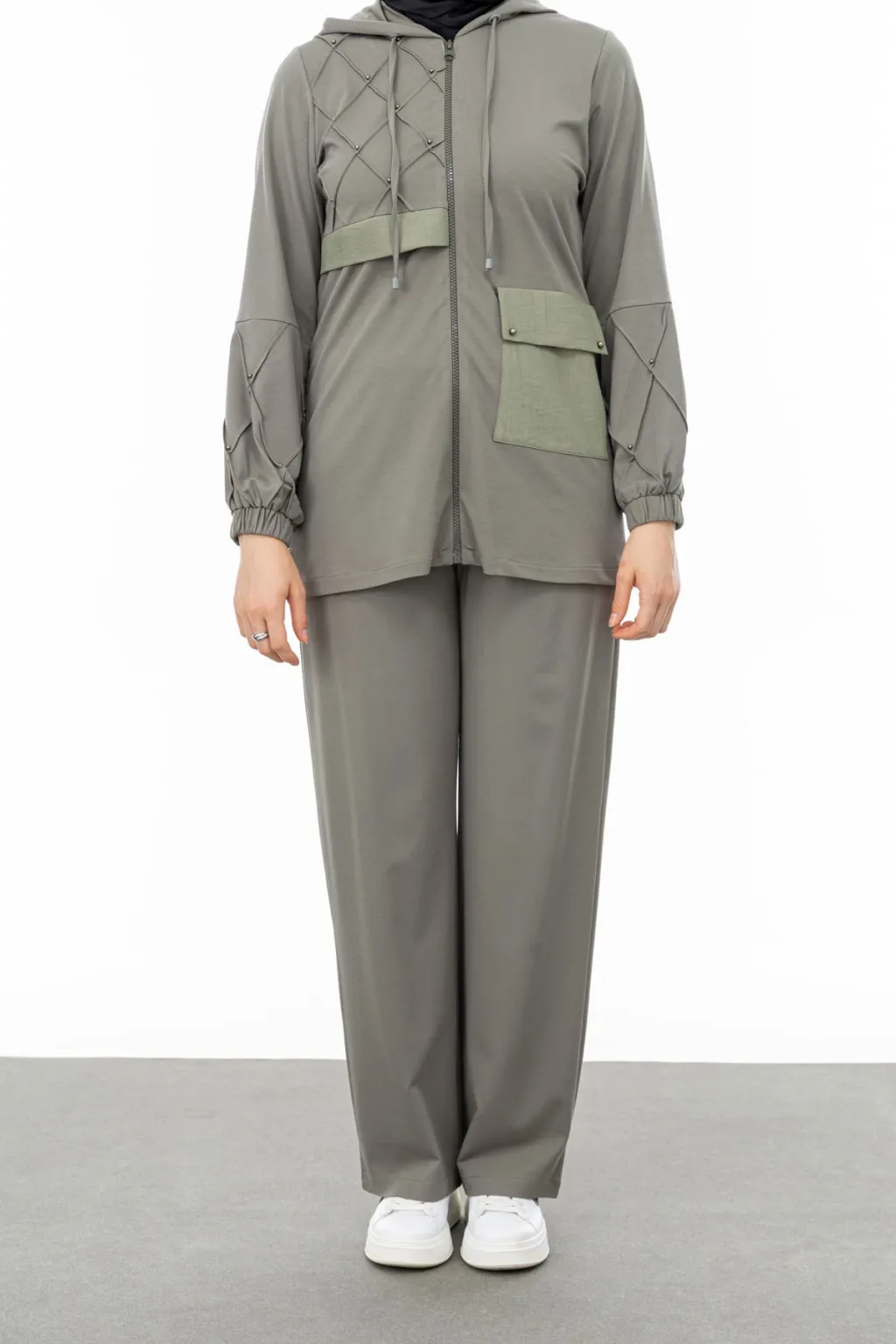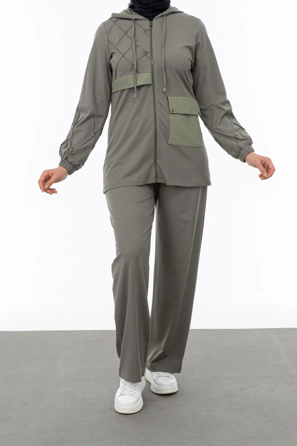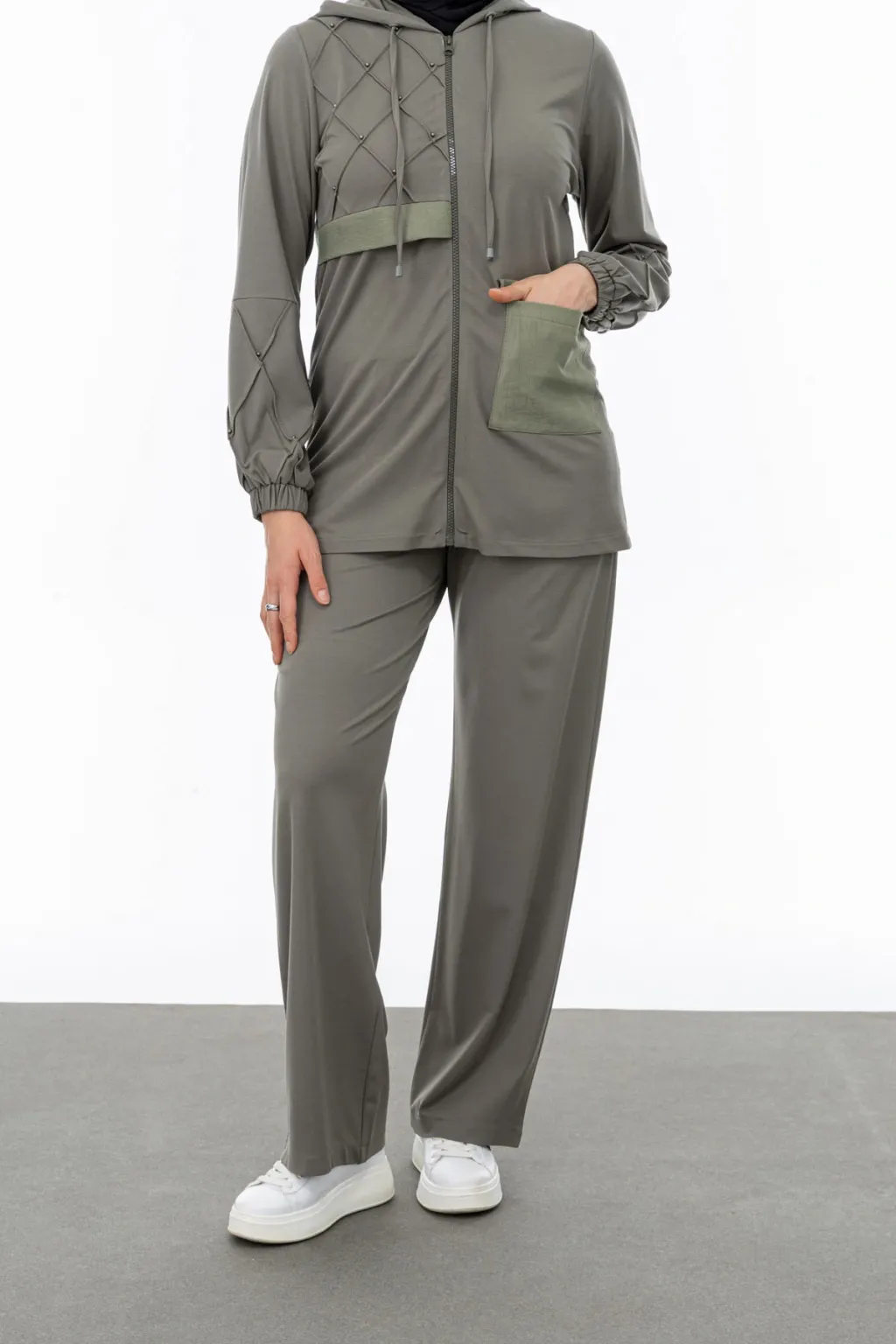 Nervür Detaylı İnci Pant. Takım - Koyu Haki - (asorti: M-xxl)