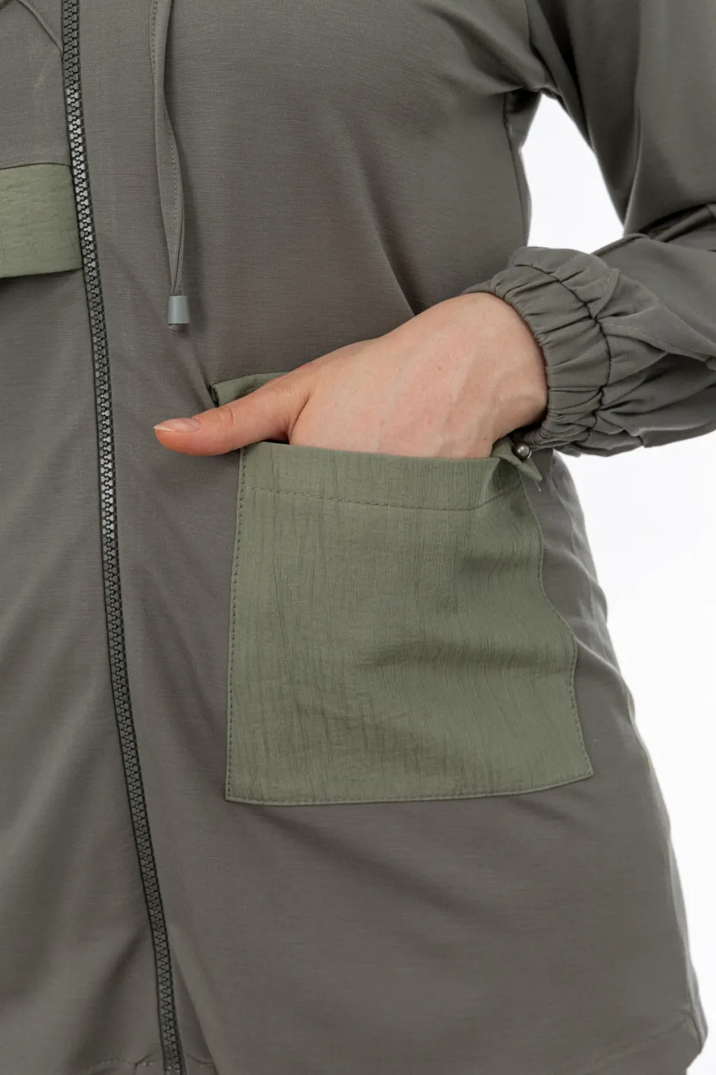 CEP KAPAKLI ÖNÜ FERMUARLI PANTOLONLU TAKIM - HAKİ - (Asorti: M-XXL)