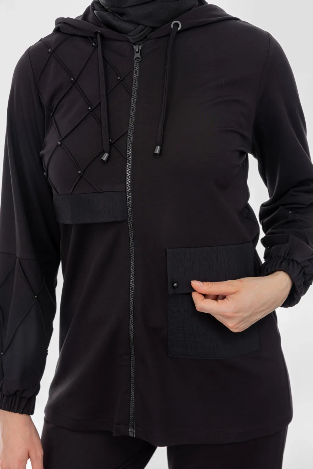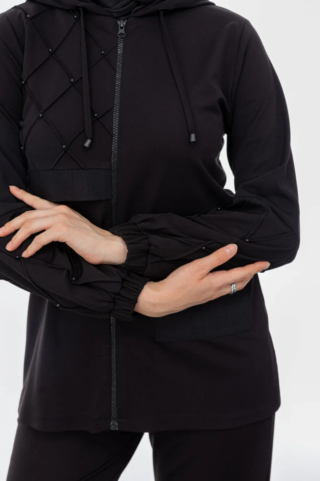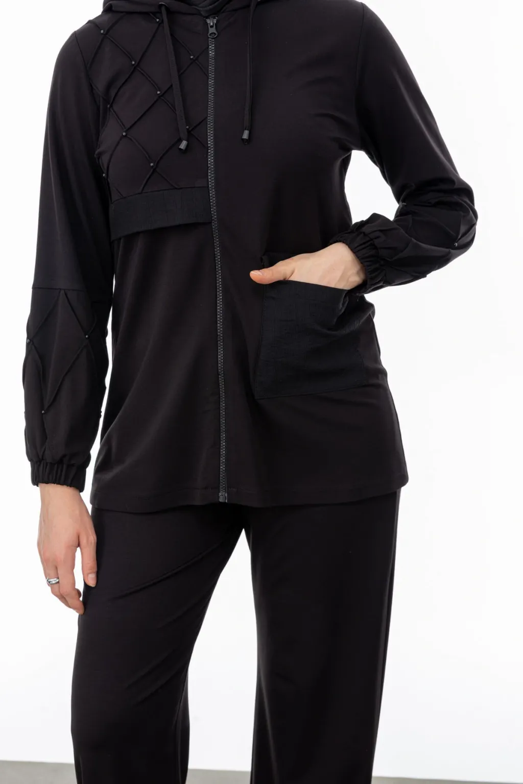 Nervür Detaylı İnci Pant. Takım - Siyah - (asorti: M-xxl)
