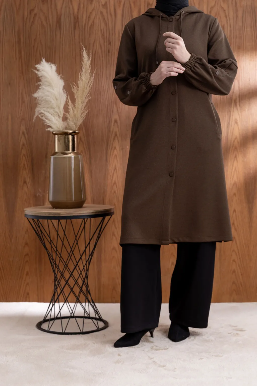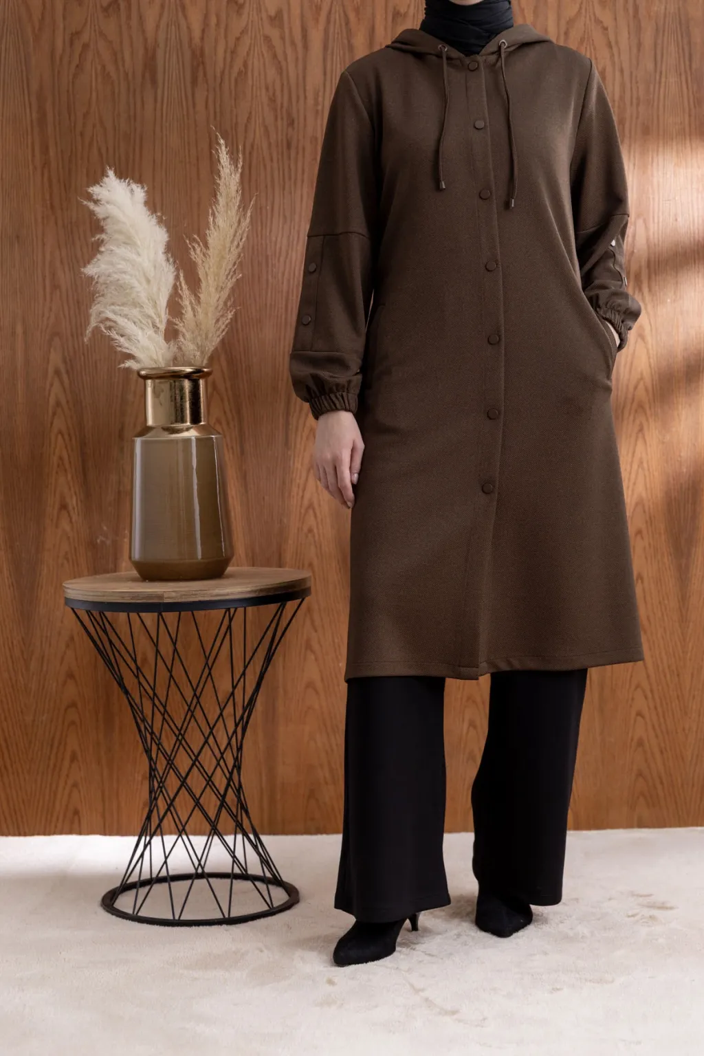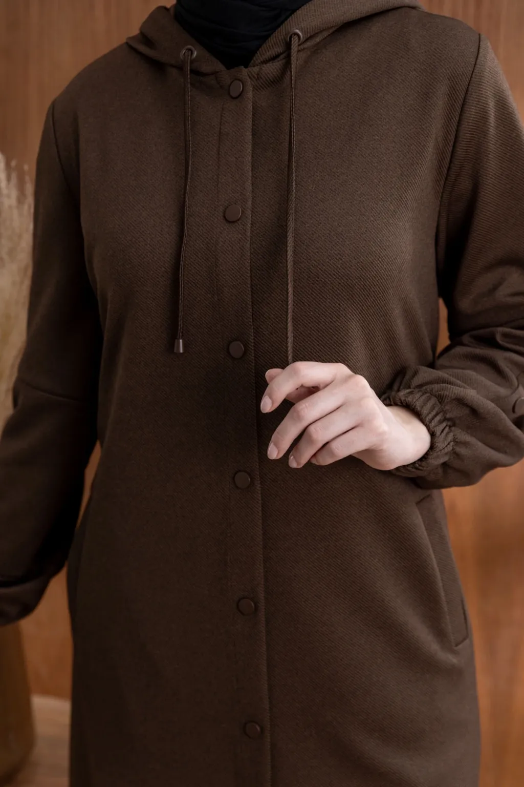 Önü Çıtçıtlı Kapüşonlu Giyçık - Kahve - (asorti: 46-52)