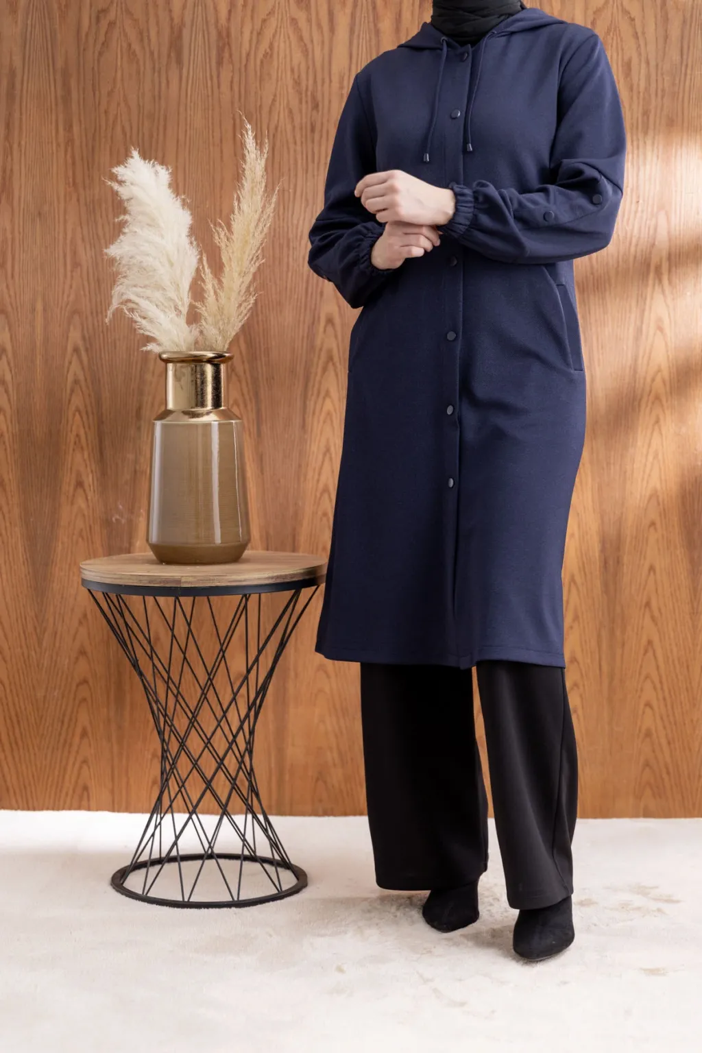 Önü Çıtçıtlı Kapüşonlu Giyçık - Lacivert - (asorti: 46-52)