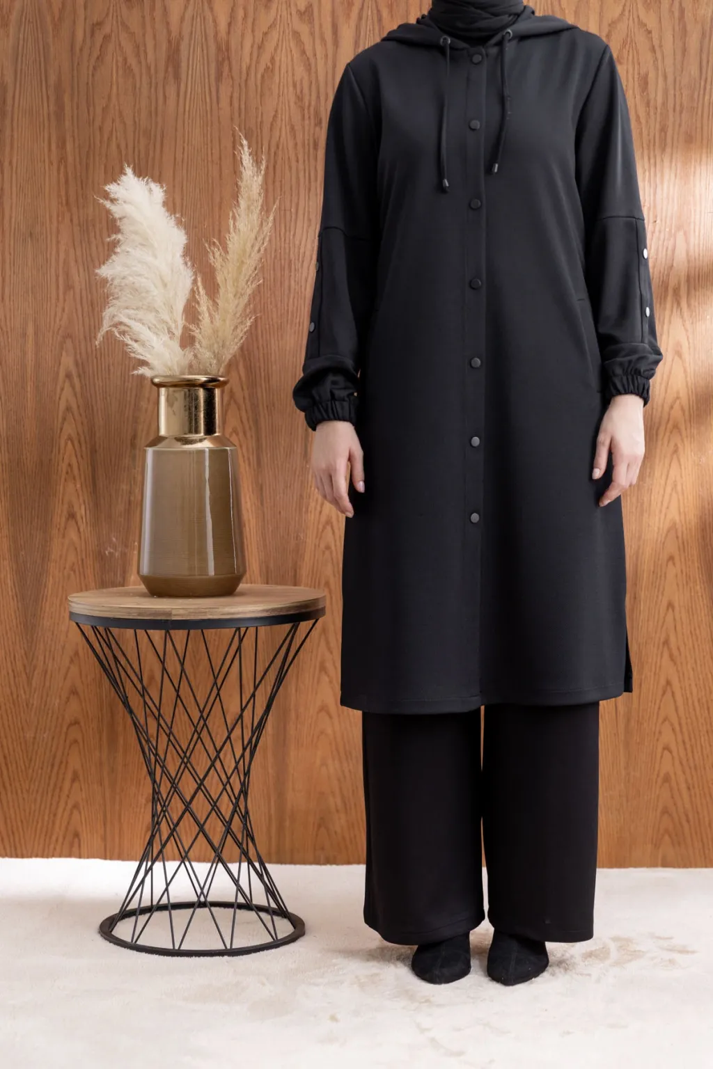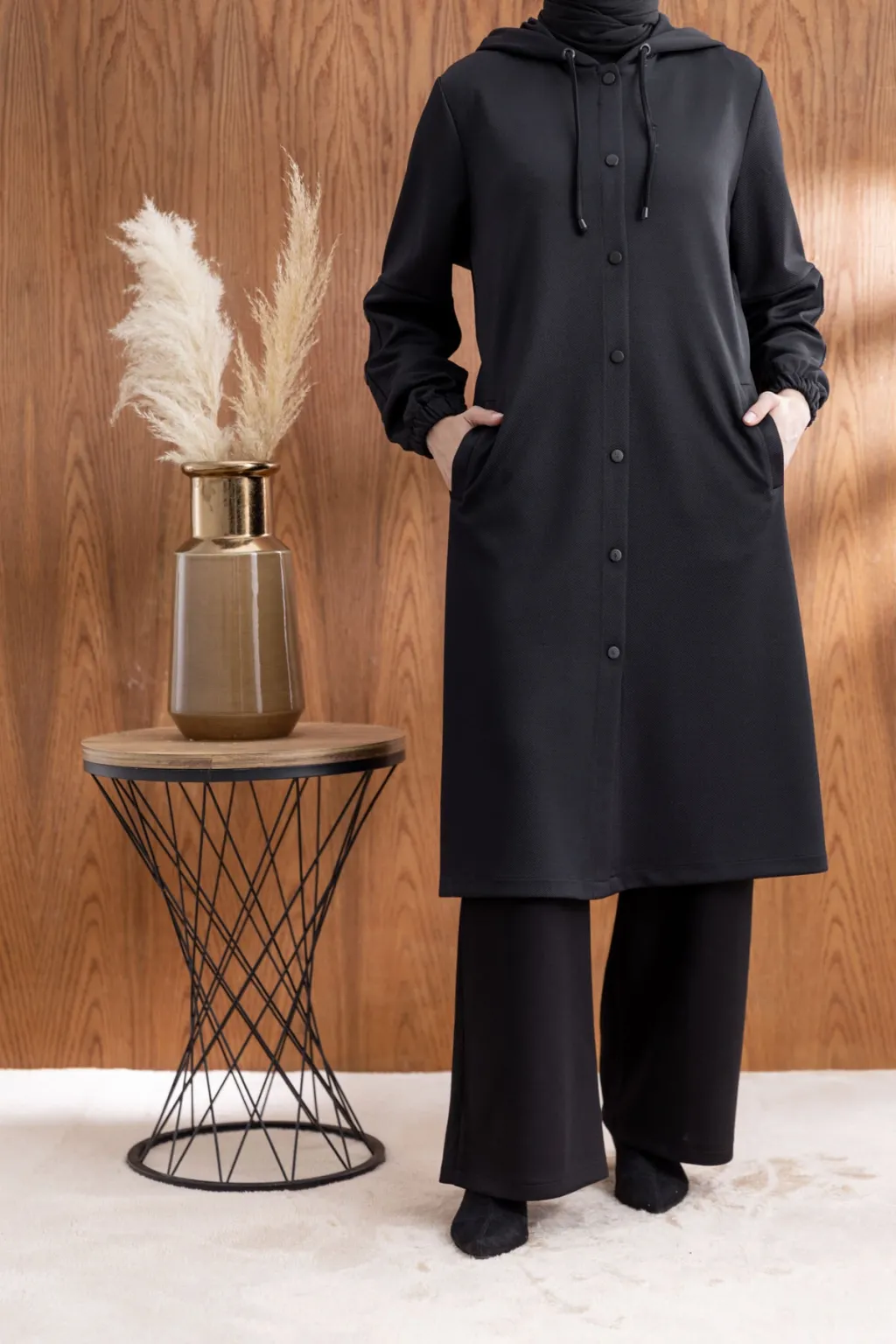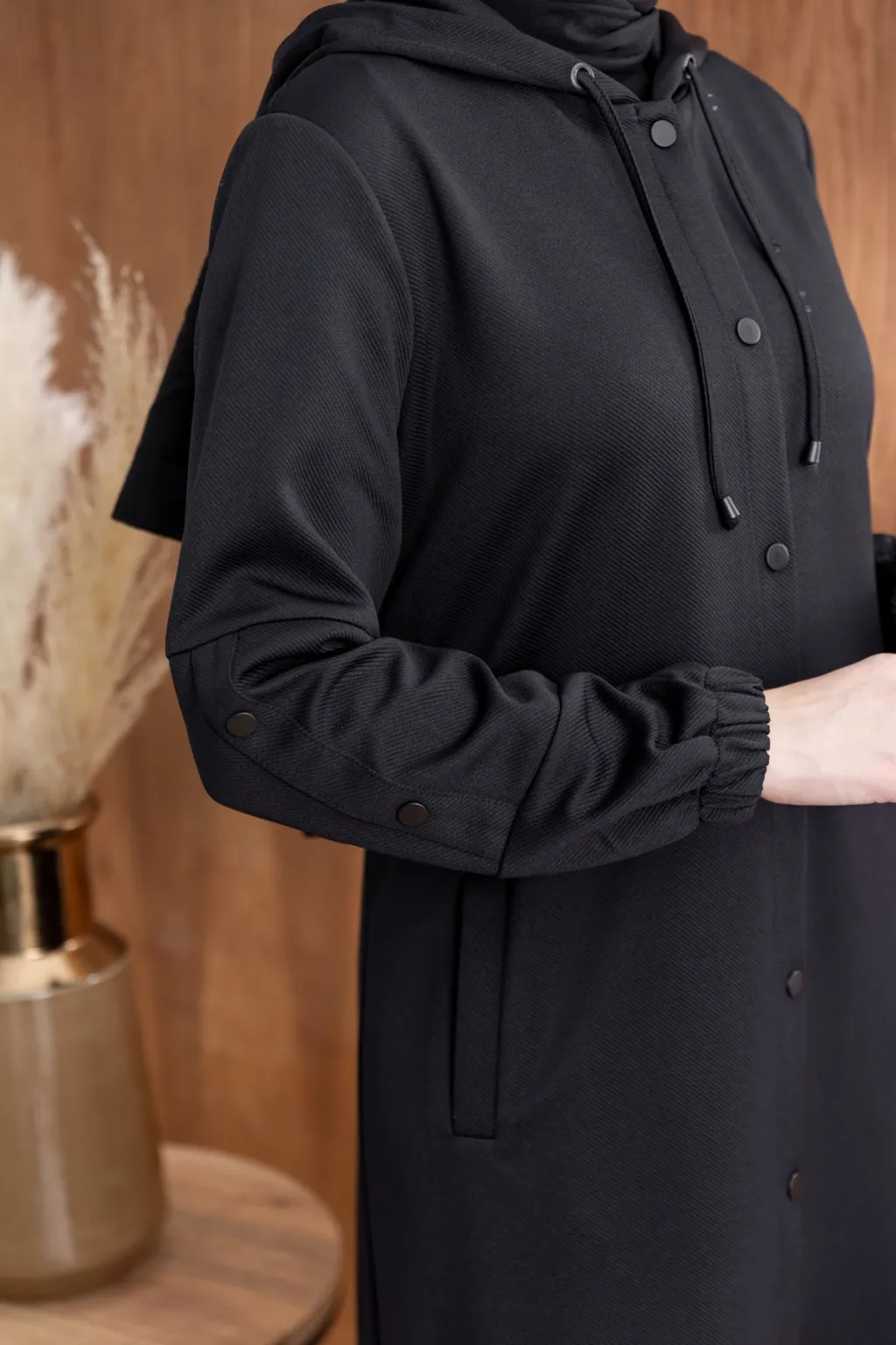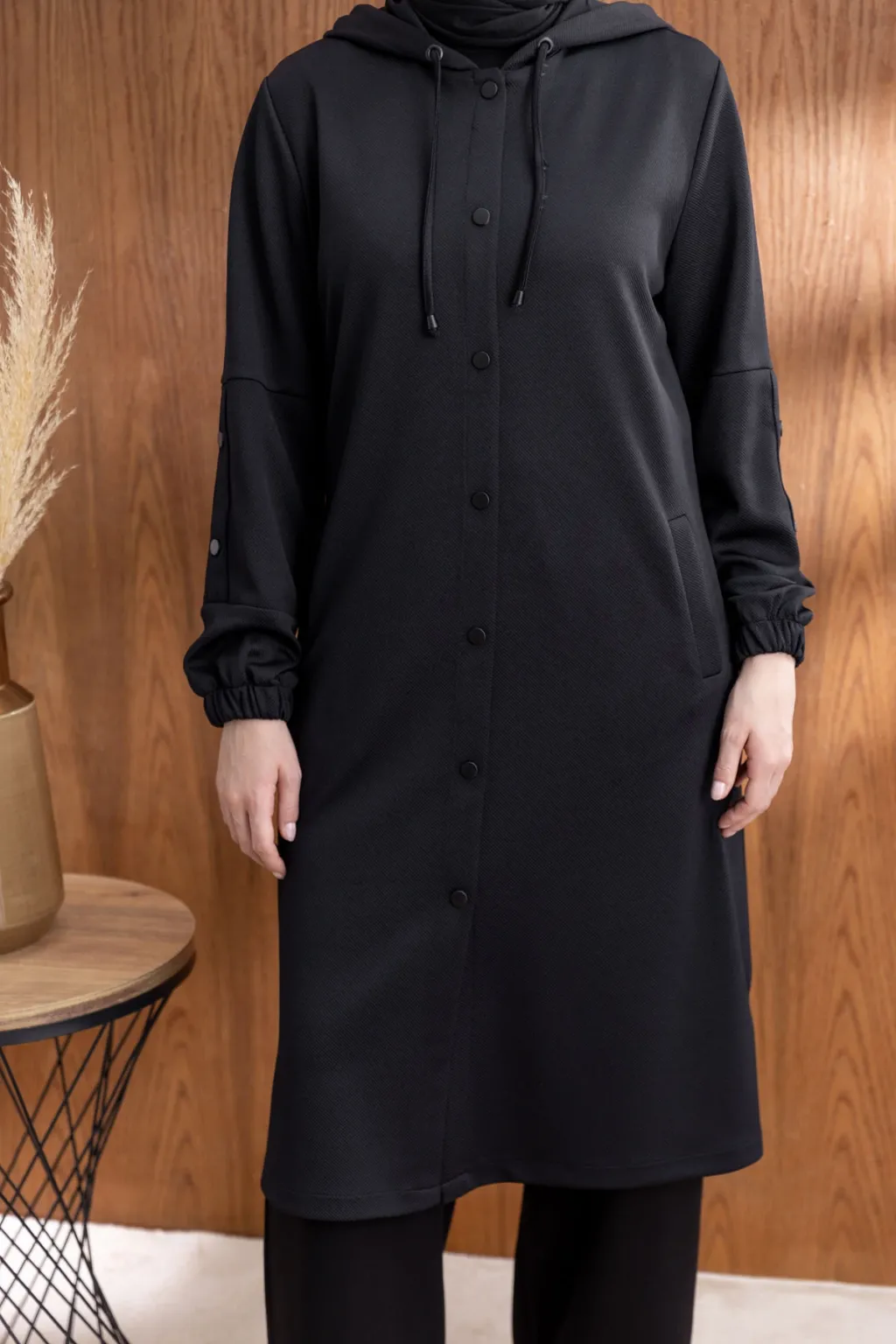 Önü Çıtçıtlı Kapüşonlu Giyçık - Siyah - (asorti: 46-52)