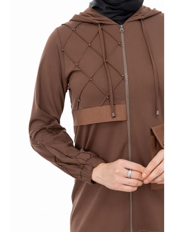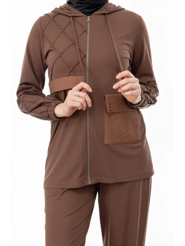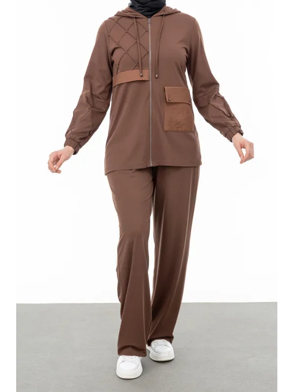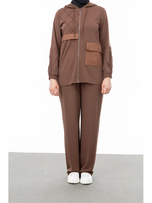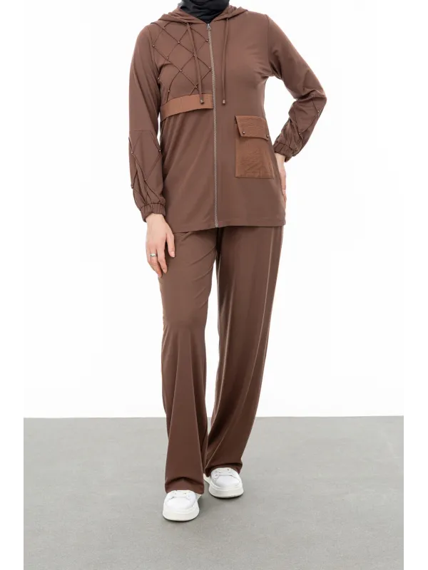 CEP KAPAKLI ÖNÜ FERMUARLI PANTOLONLU TAKIM - KAHVE - (Asorti: M-XXL)