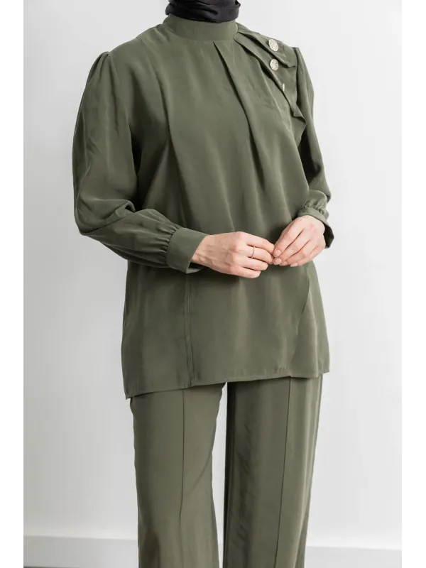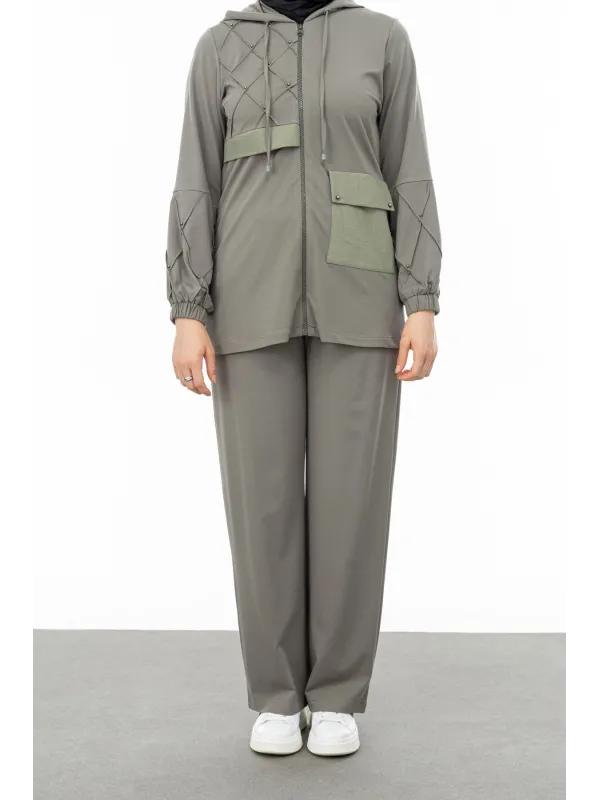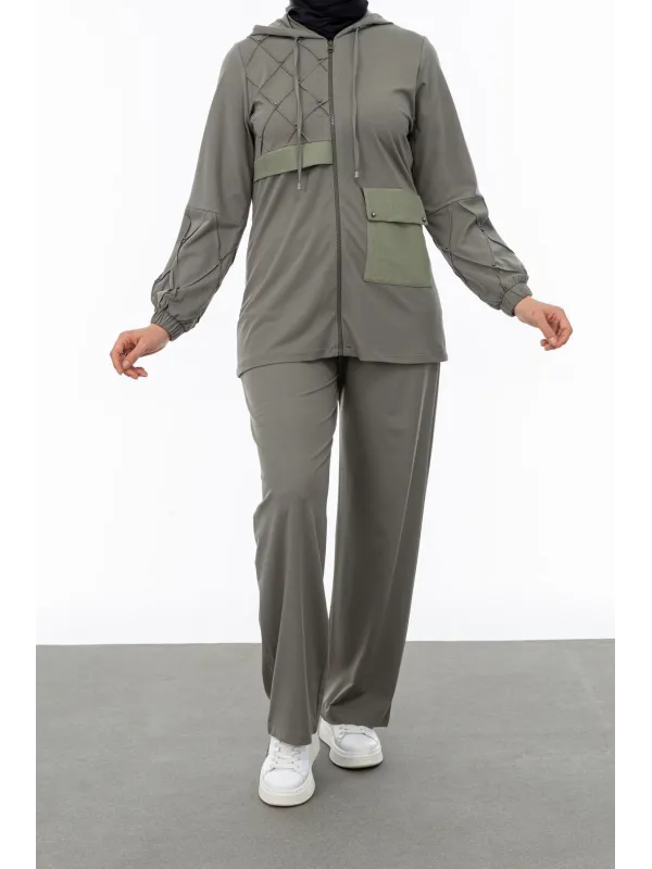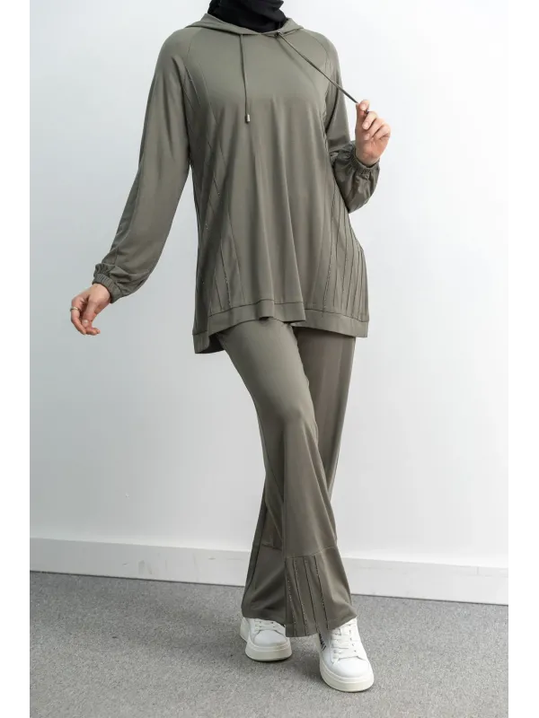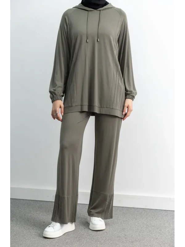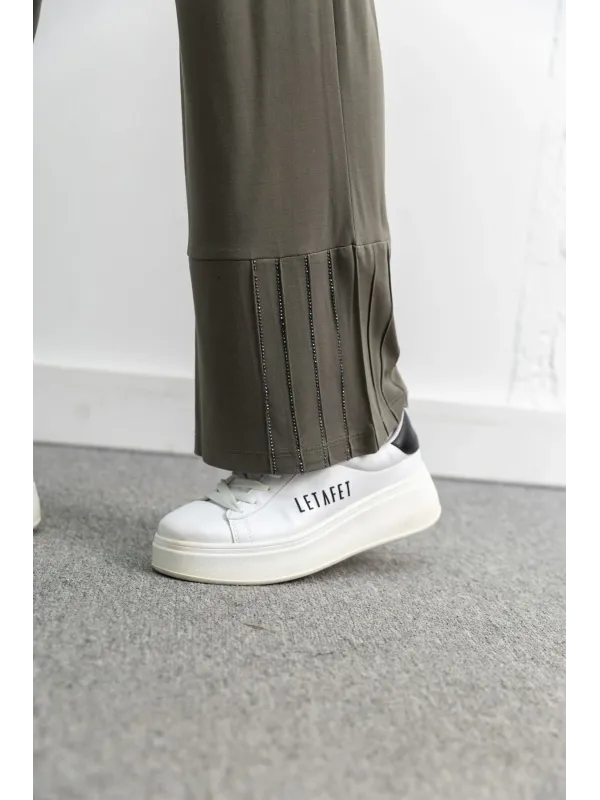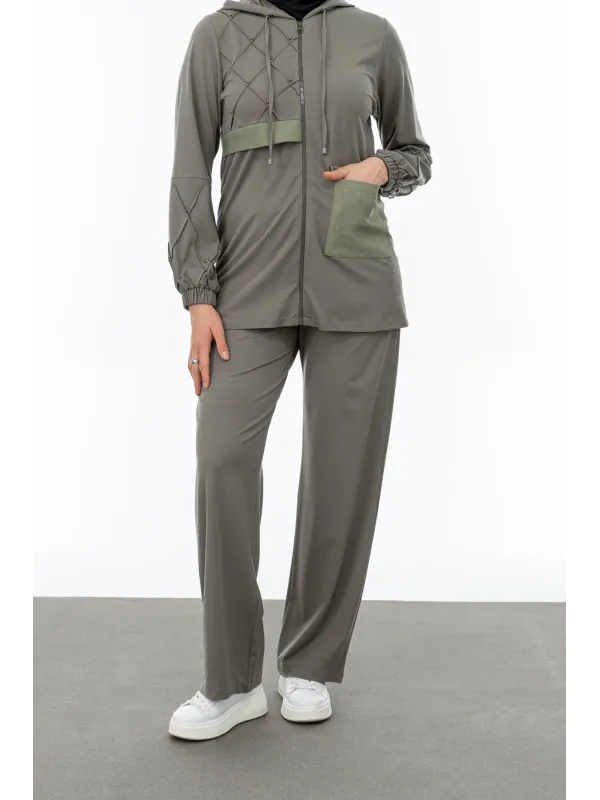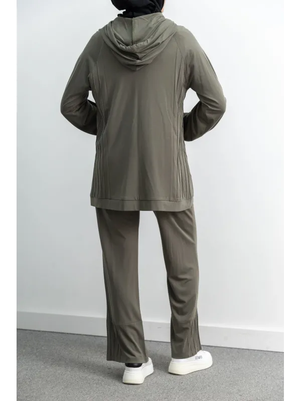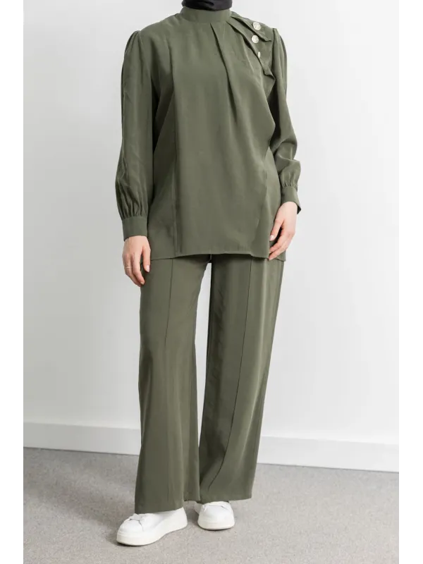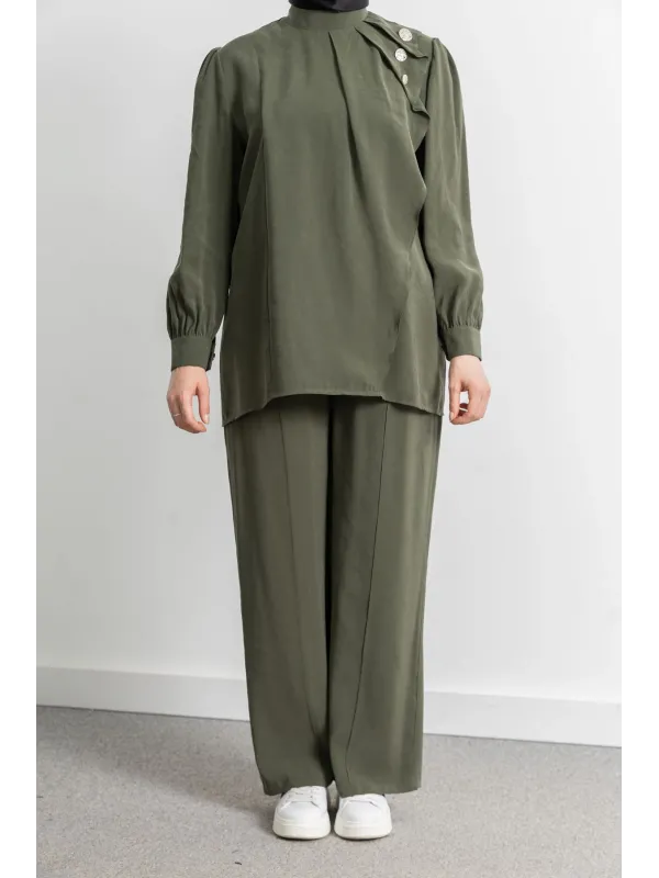 NERVÜR DETAYLI İNCİ PANT. TAKIM - KOYU HAKİ - (Asorti: M-XXL)