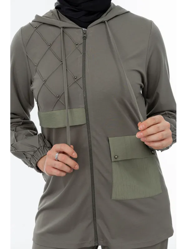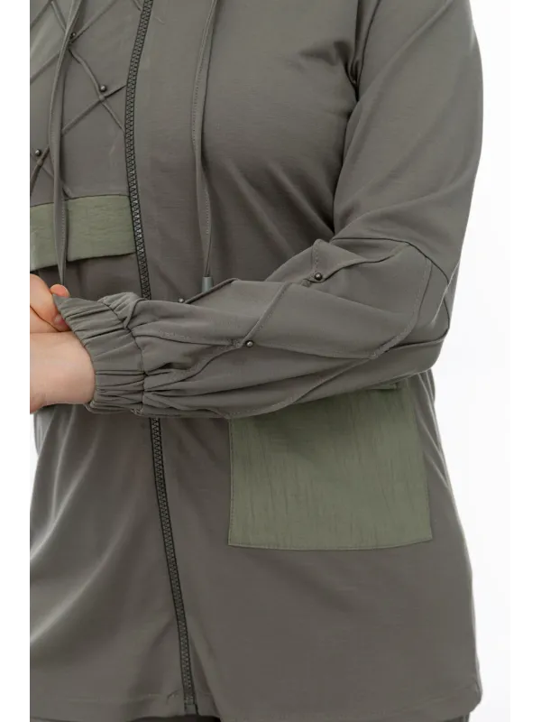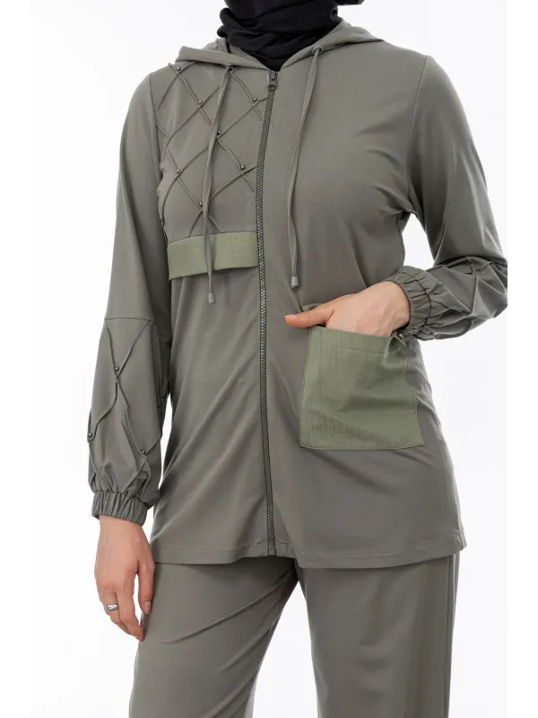 CEP KAPAKLI ÖNÜ FERMUARLI PANTOLONLU TAKIM - HAKİ - (Asorti: M-XXL)