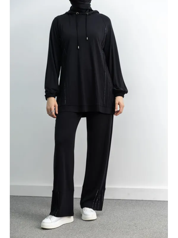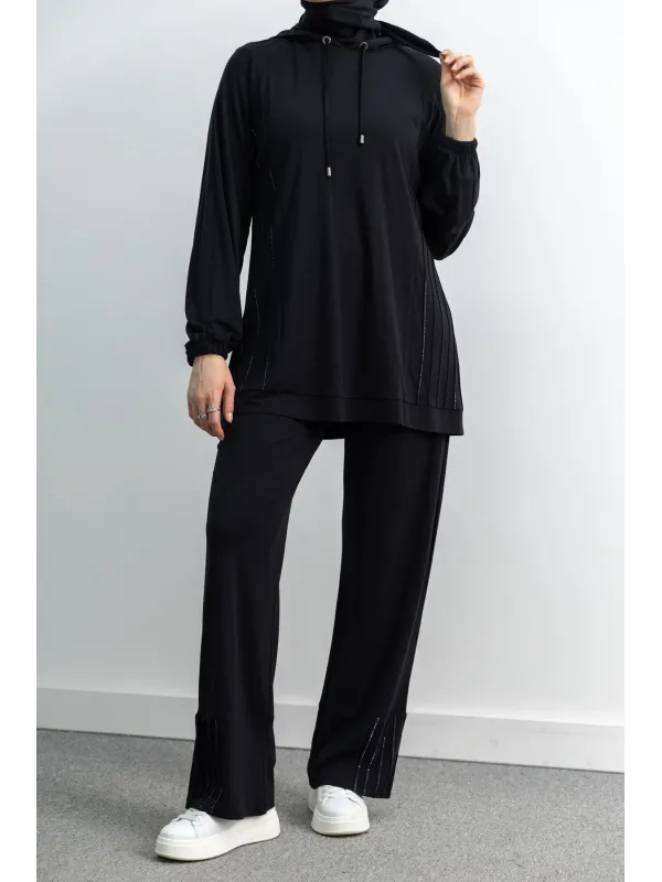 LETAFET 4068 PANTOLONLU TAKIM - SİYAH - (Asorti: M-XL)