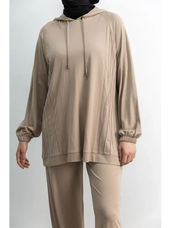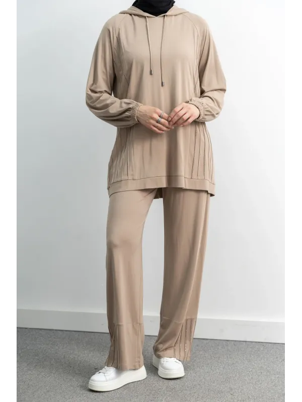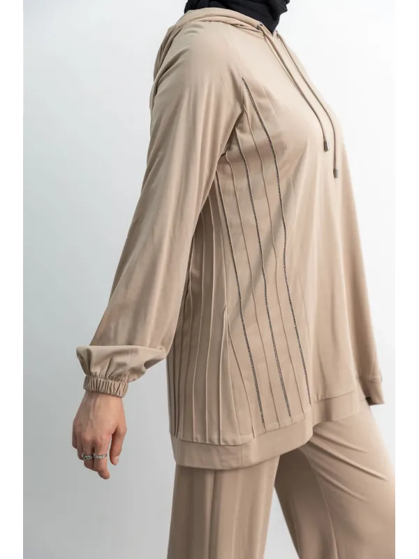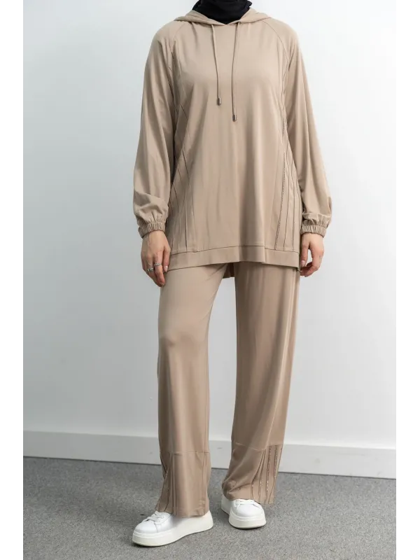 LETAFET 4068 PANTOLONLU TAKIM - BEJ - (Asorti: M-XL)