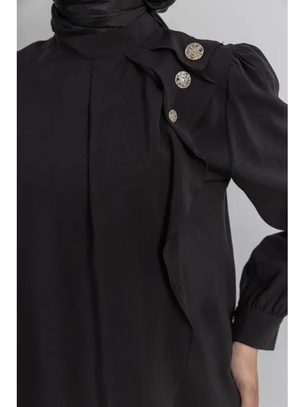 LETAFET ÖNÜ VOLAN DETAYLI PANTOLONLU TAKIM - SİYAH - (Asorti: M-XXL)