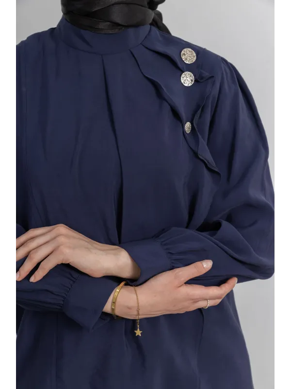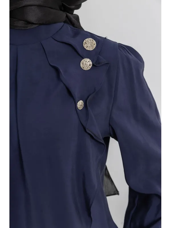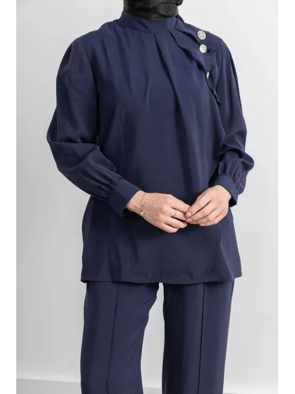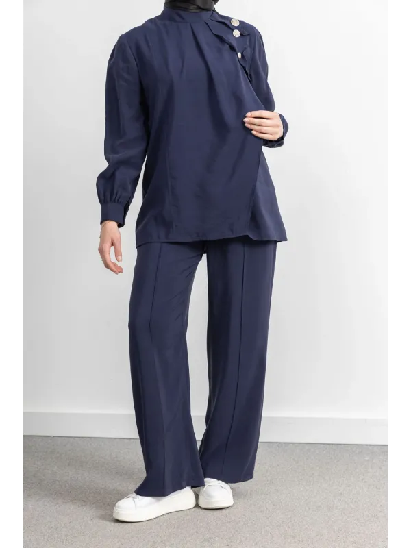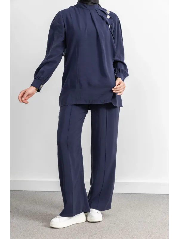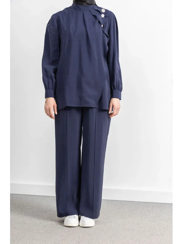 LETAFET ÖNÜ VOLAN DETAYLI PANTOLONLU TAKIM - LACİVERT - (Asorti: M-XXL)