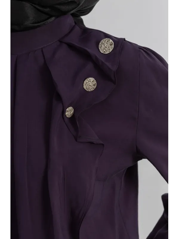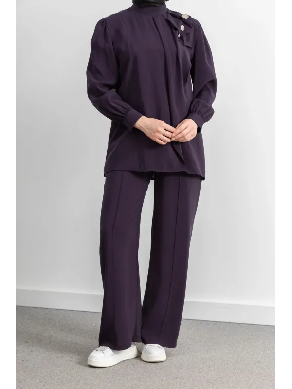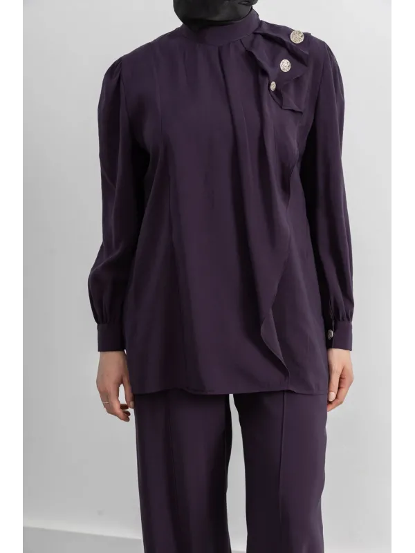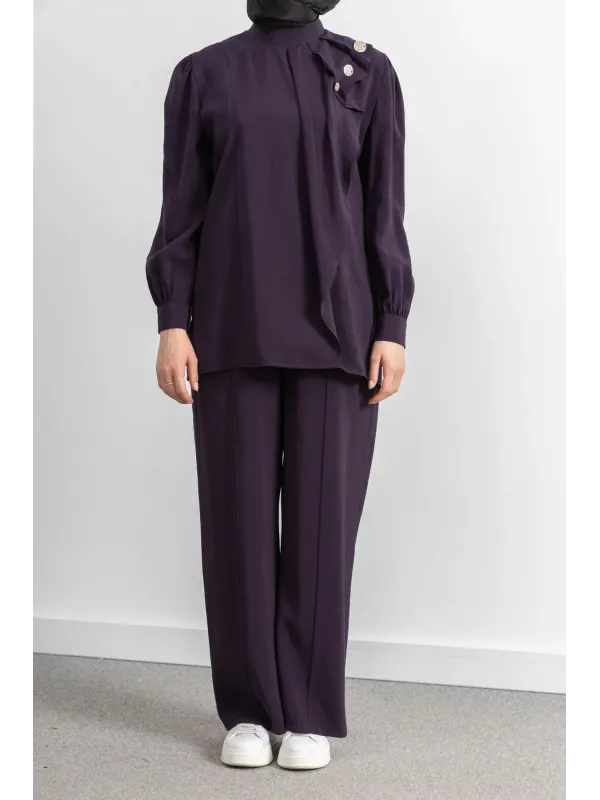 LETAFET ÖNÜ VOLAN DETAYLI PANTOLONLU TAKIM - MÜRDÜM - (Asorti: M-XXL)