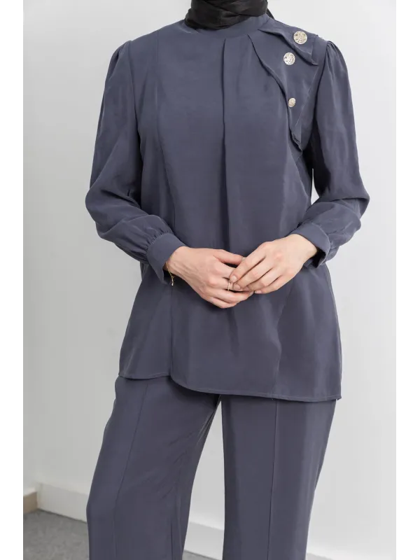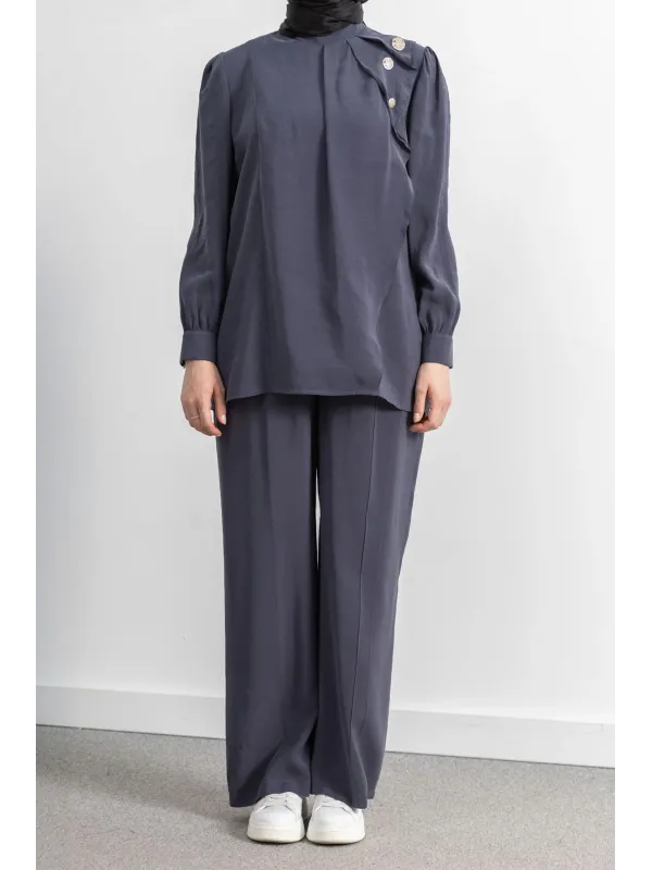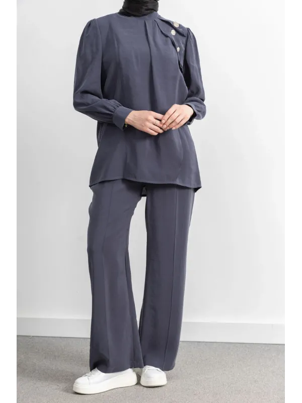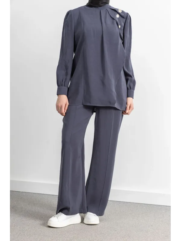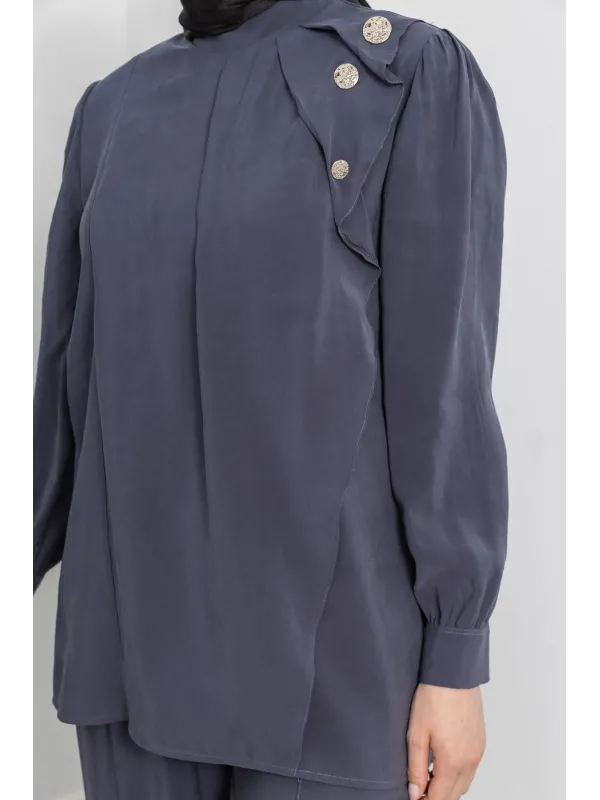 LETAFET ÖNÜ VOLAN DETAYLI PANTOLONLU TAKIM - ANTRASİT - (Asorti: M-XXL)