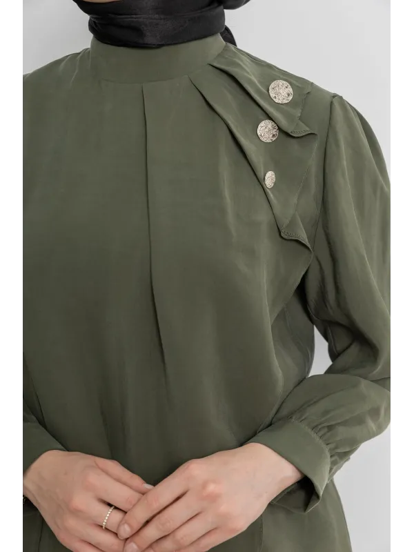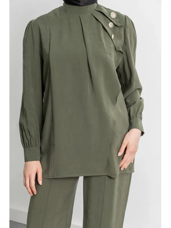 LETAFET ÖNÜ VOLAN DETAYLI PANTOLONLU TAKIM - HAKİ - (Asorti: M-XXL)