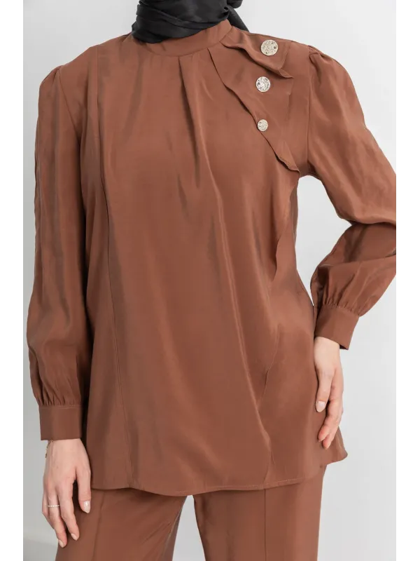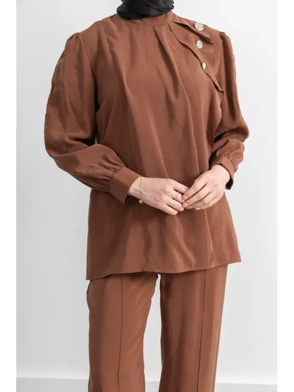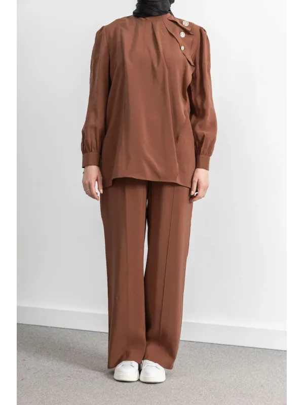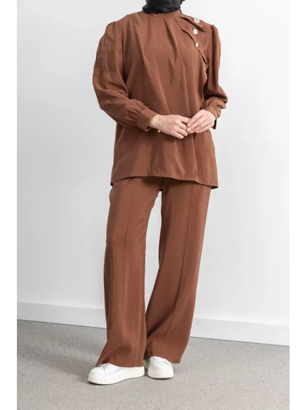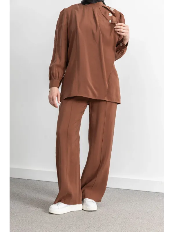 NERVÜR DETAYLI İNCİ PANT. TAKIM - KAHVE - (Asorti: M-XXL)