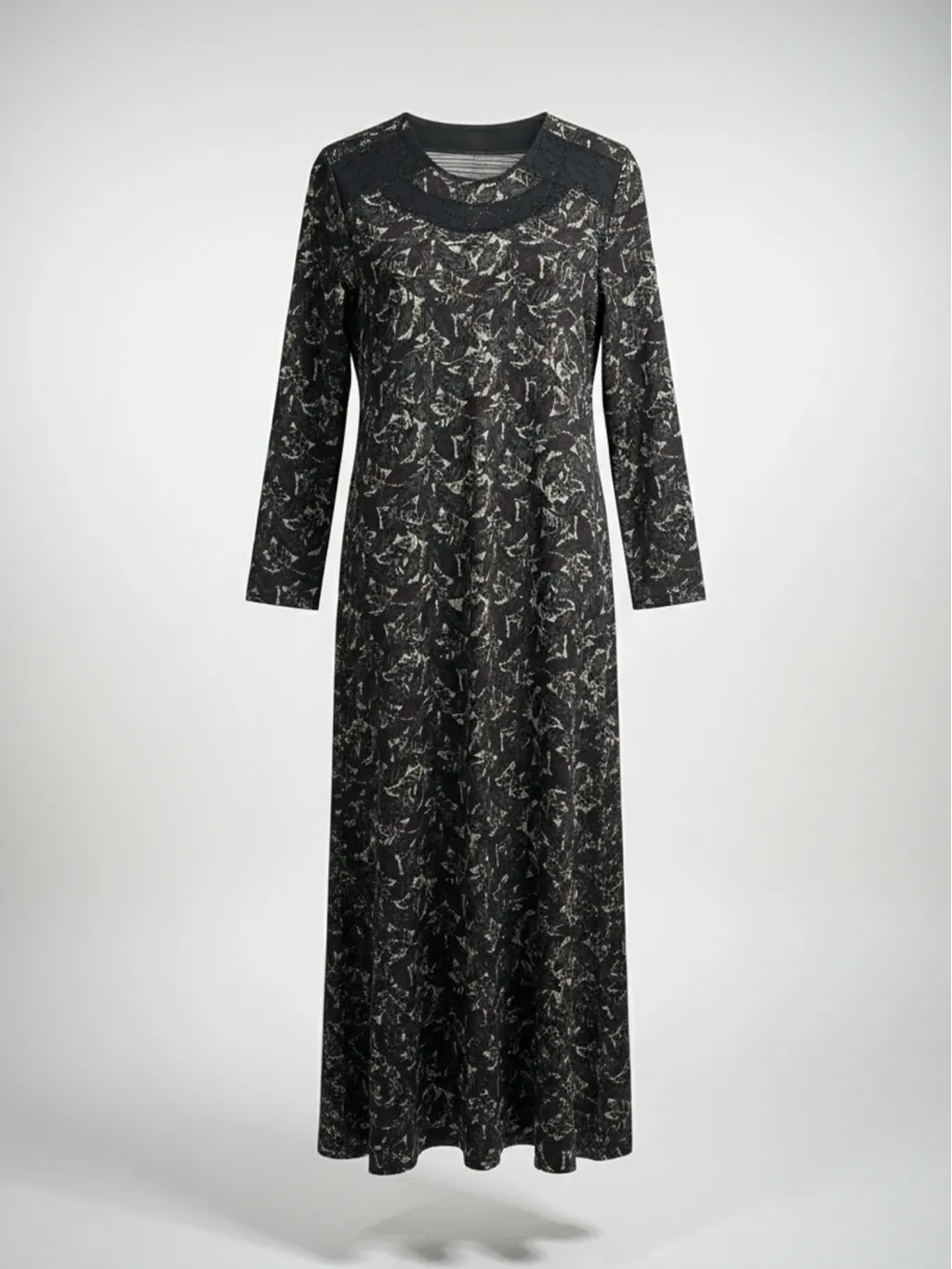 HESNA 8506 BASKILI ELBİSE - SİYAH - (Asorti: 4-6)
