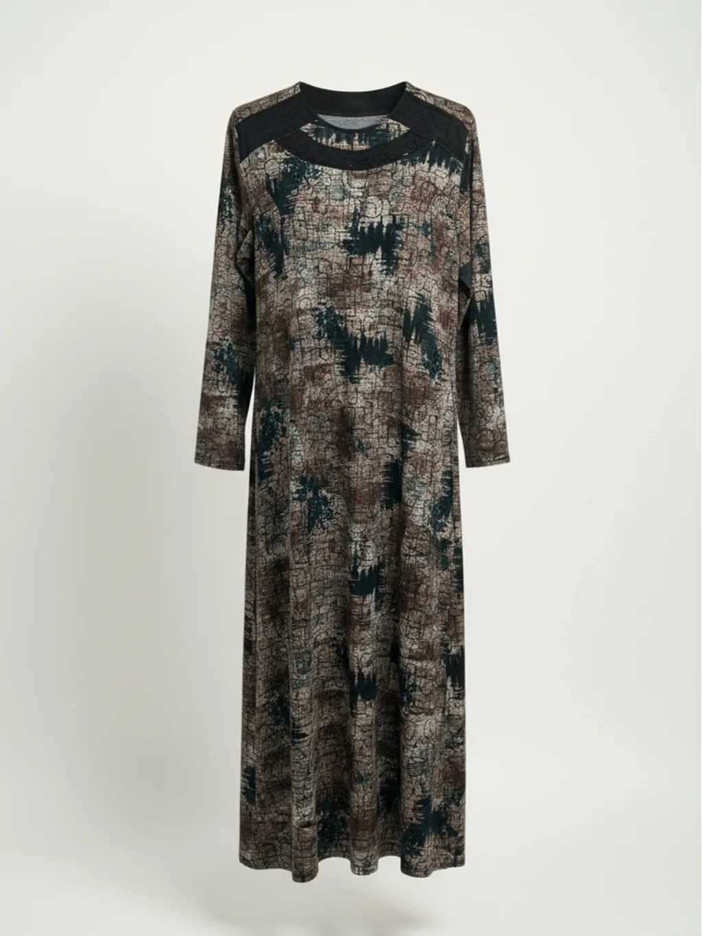 HESNA 8506 BASKILI ELBİSE - KAHVE - (Asorti: 4-6)