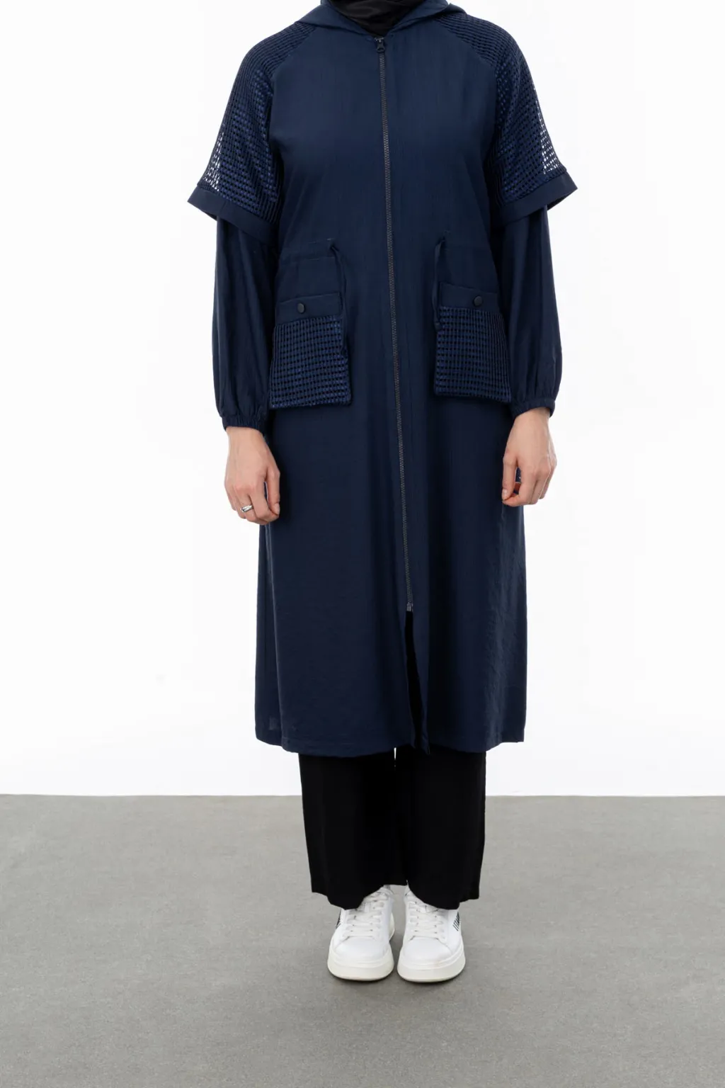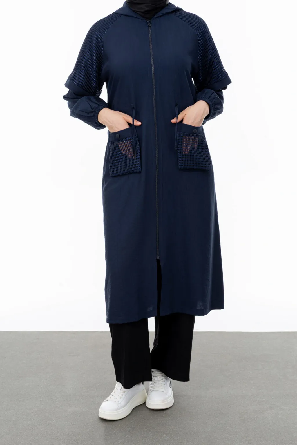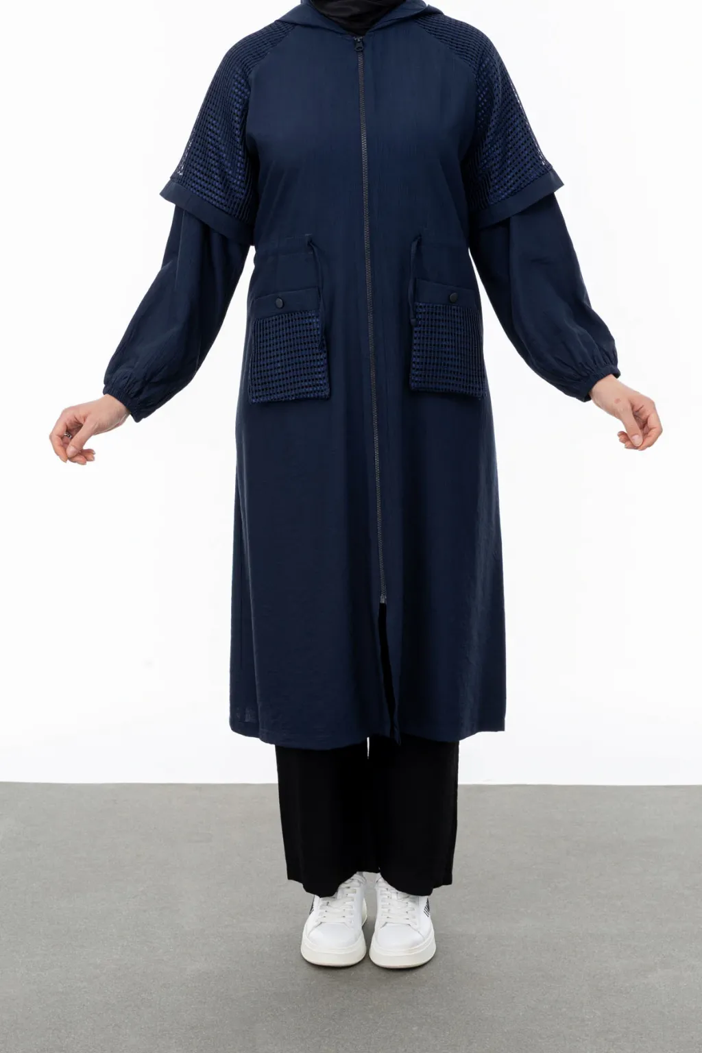 ÖNÜ ÇITÇITLI KAPÜŞONLU GİYÇIK - LACİVERT - (Asorti: 46-52)