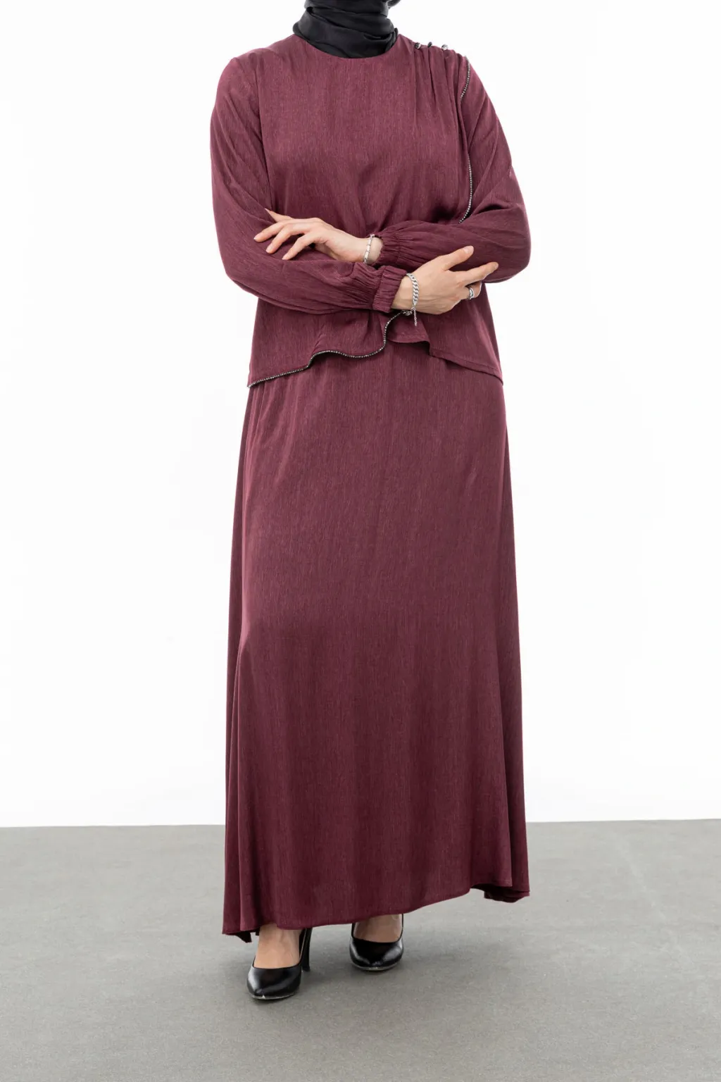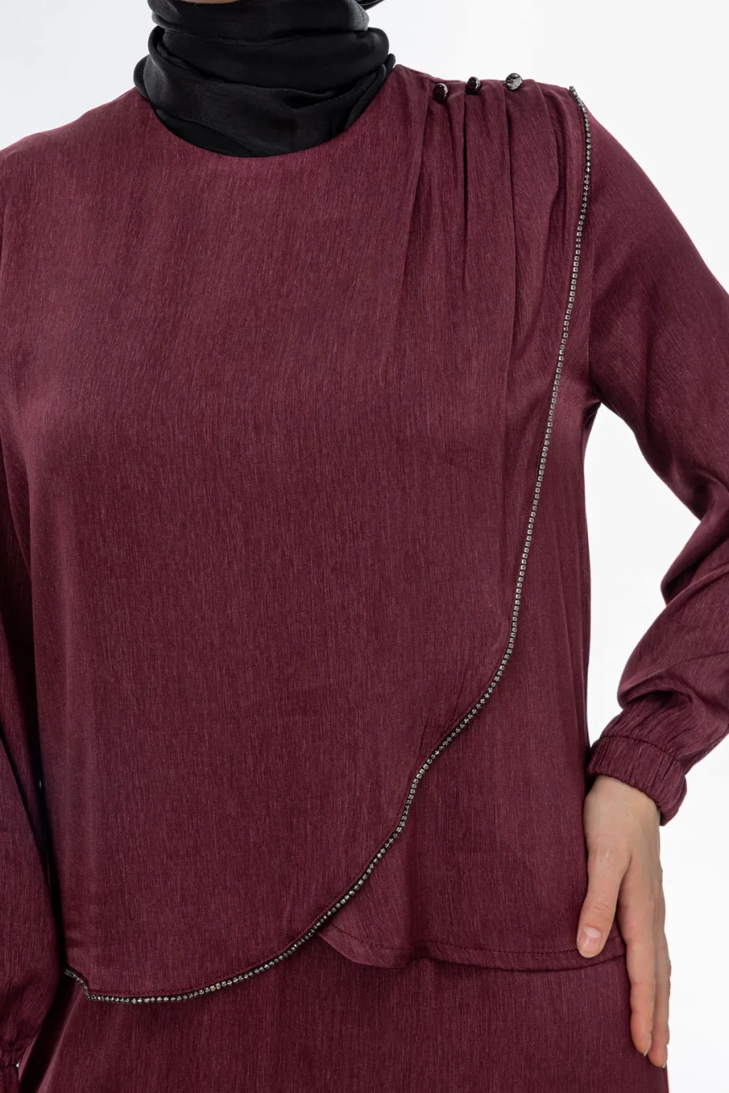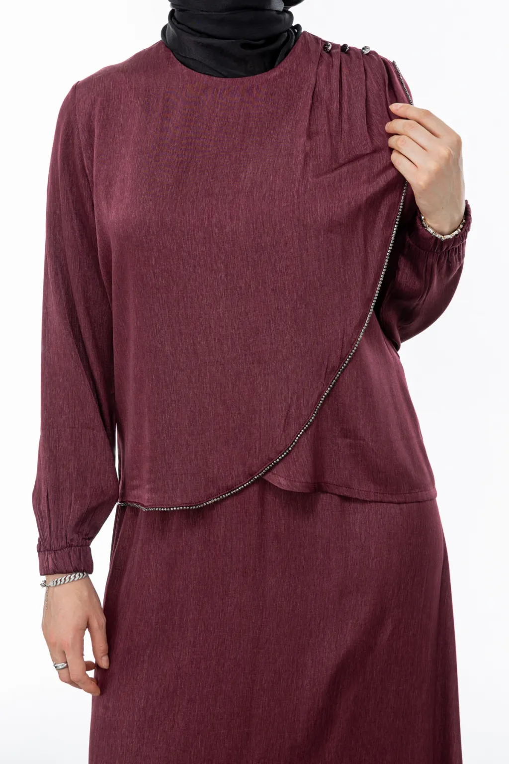 Taş Biye Detaylı Etek Takım - Bordo - (asorti: M-xxl)