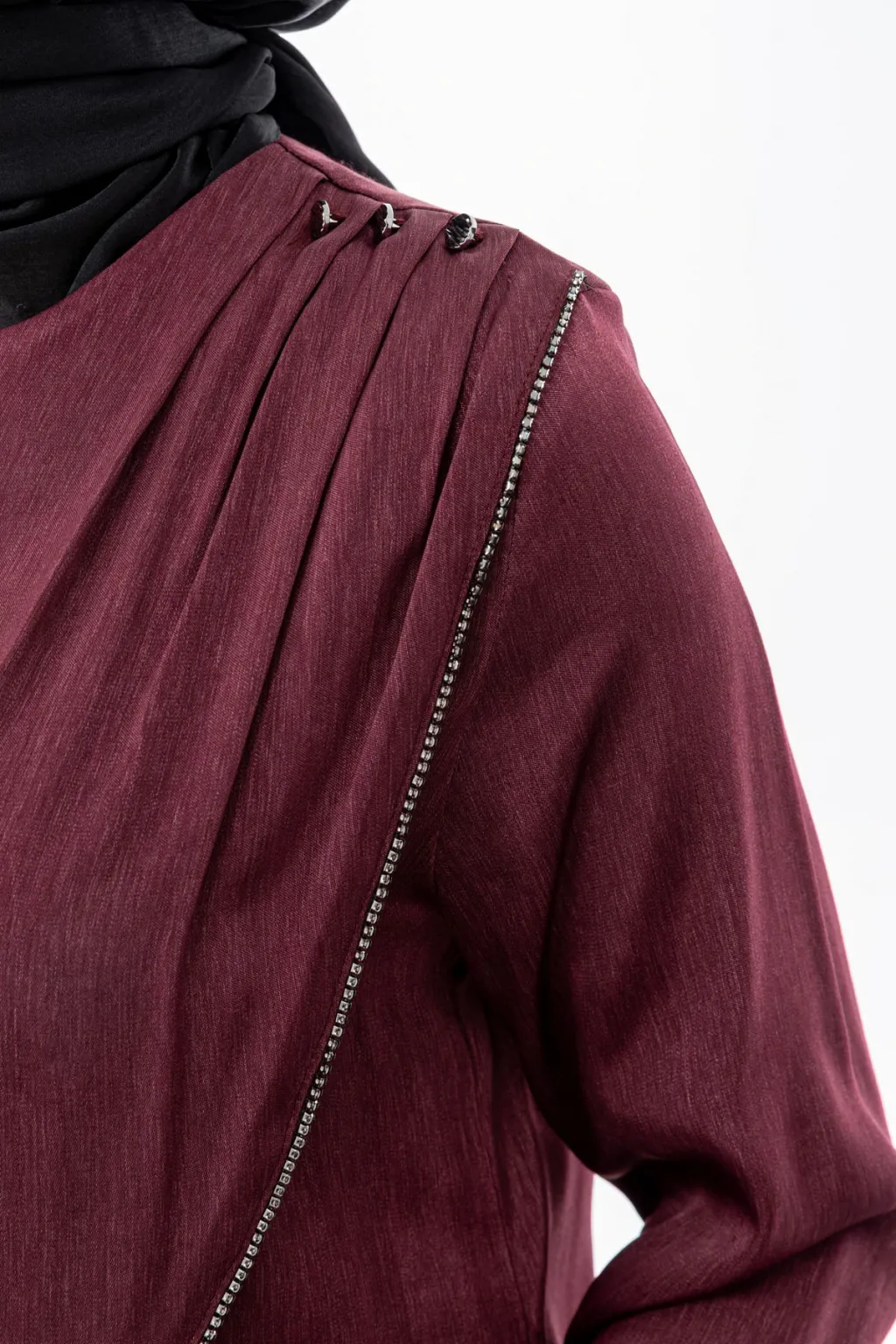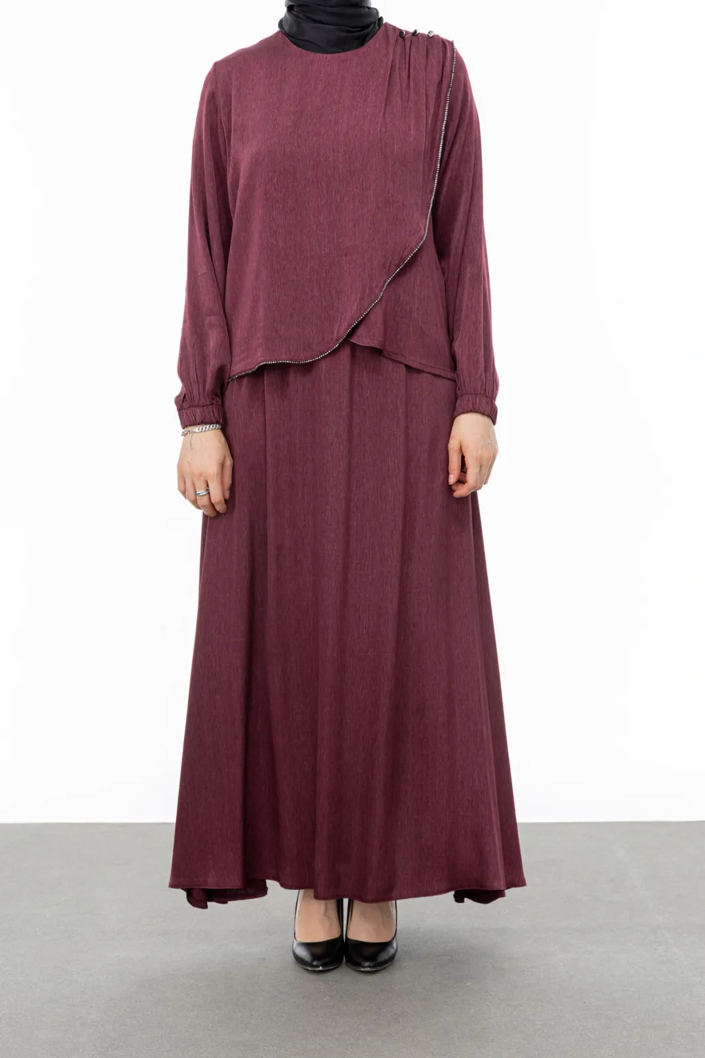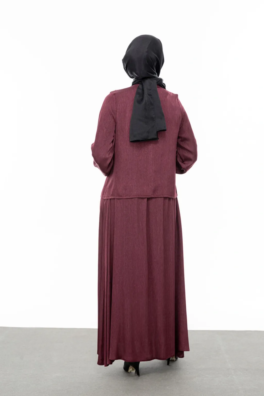 Taş Biye Detaylı Etek Takım - Bordo - (asorti: M-xxl)