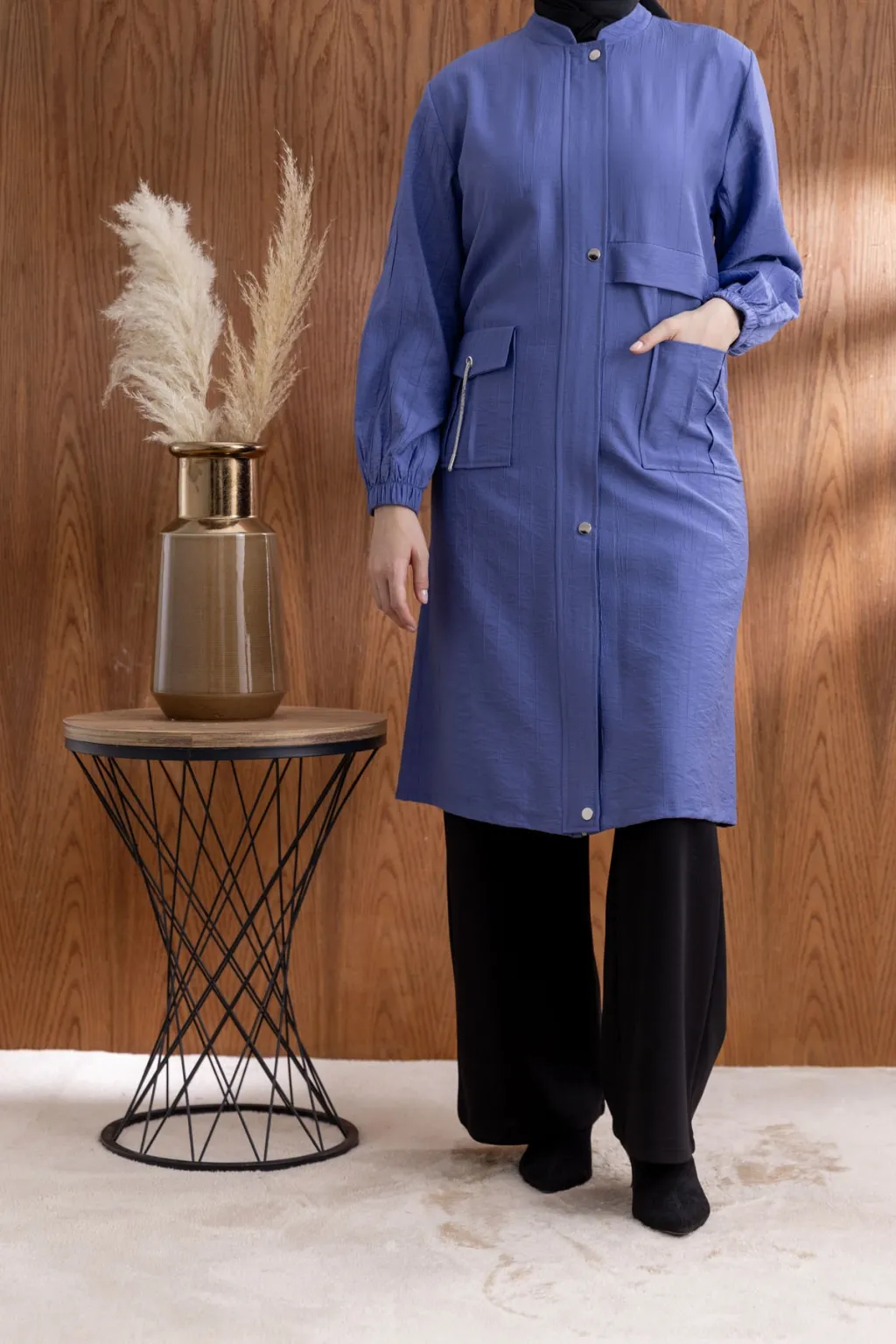 ÖNÜ ÇITÇITLI KAPÜŞONLU GİYÇIK - LACİVERT - (Asorti: 46-52)