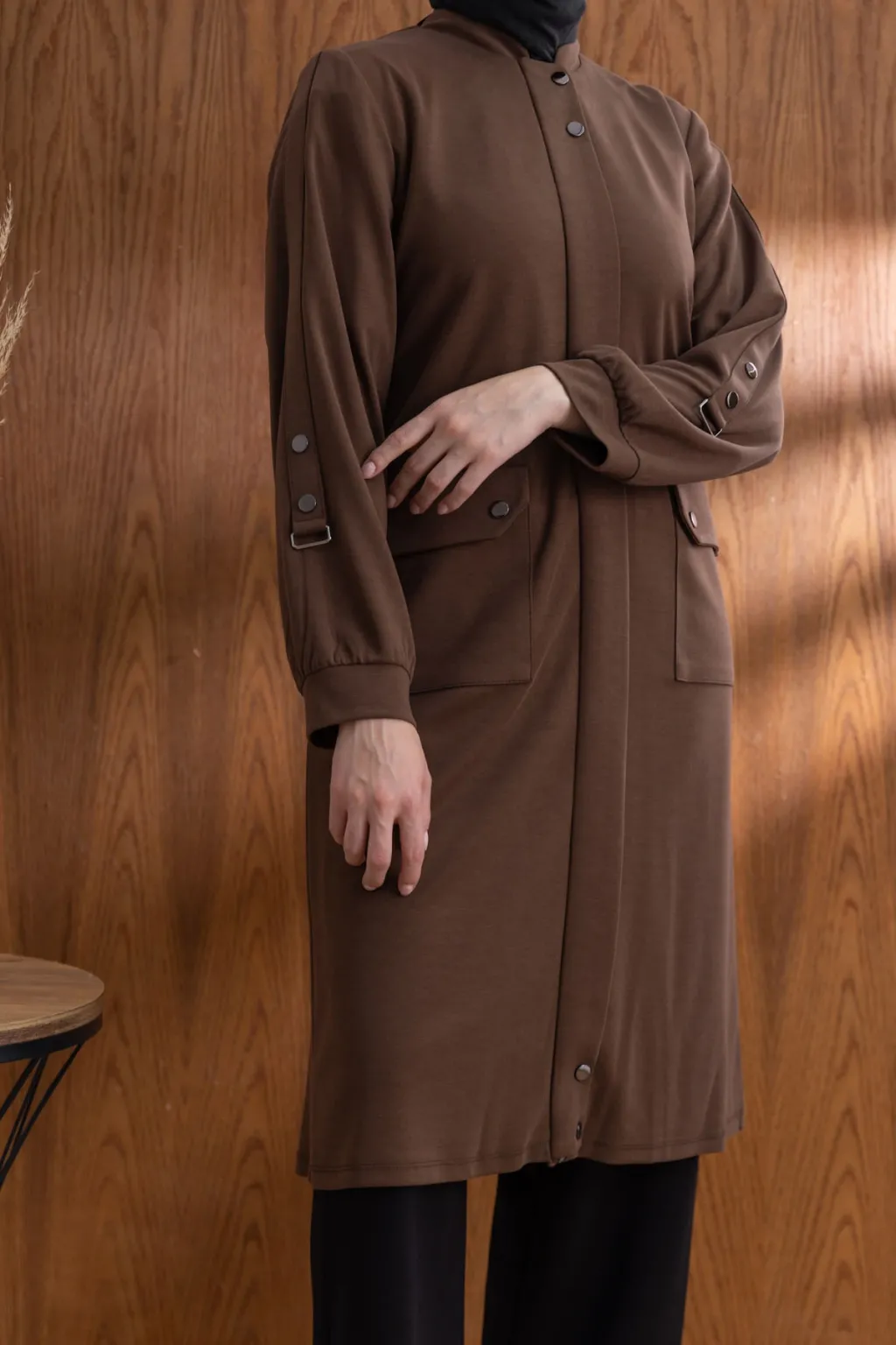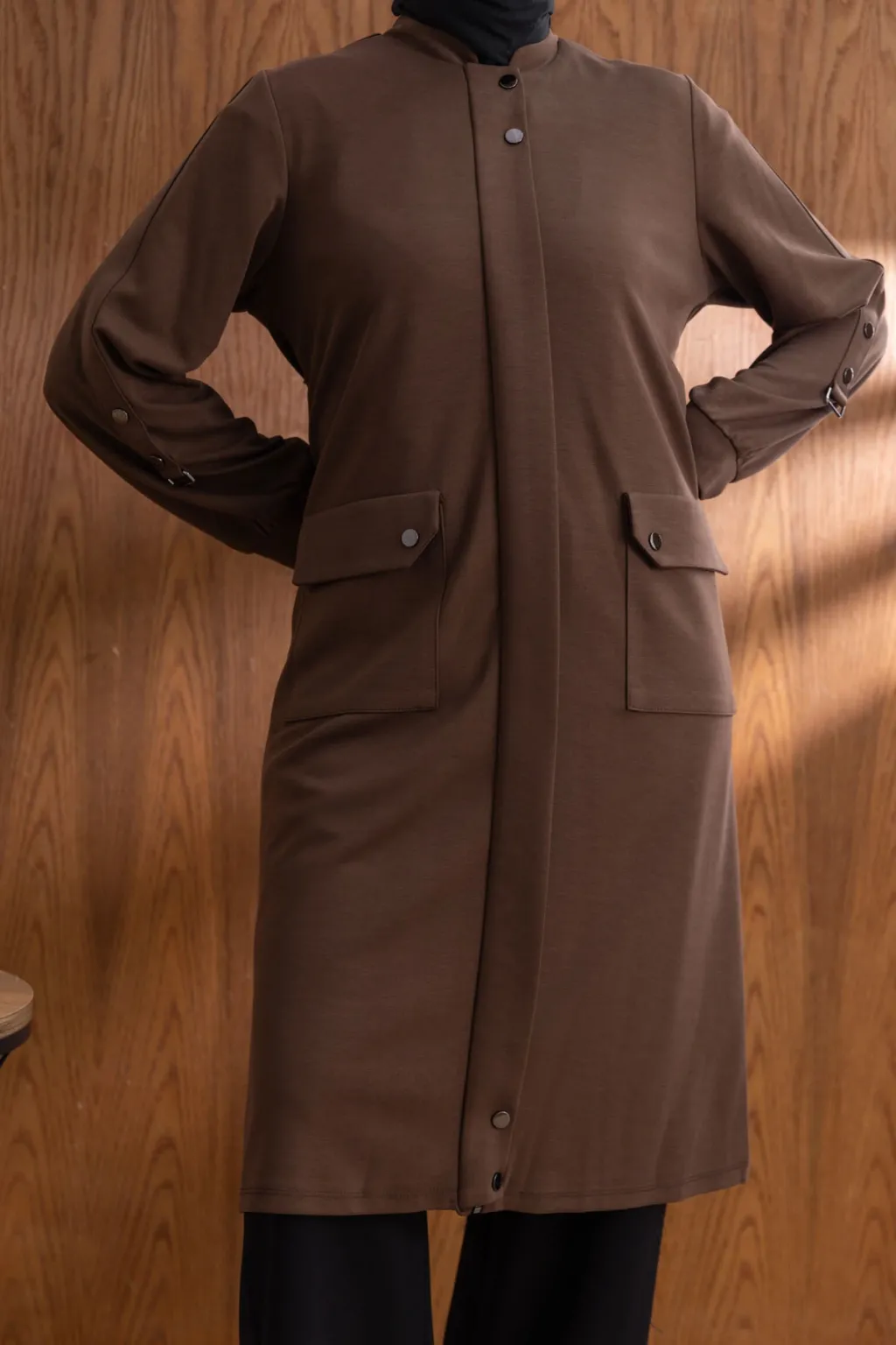 ÖNÜ ÇITÇITLI KAPÜŞONLU GİYÇIK - KAHVE - (Asorti: 46-52)