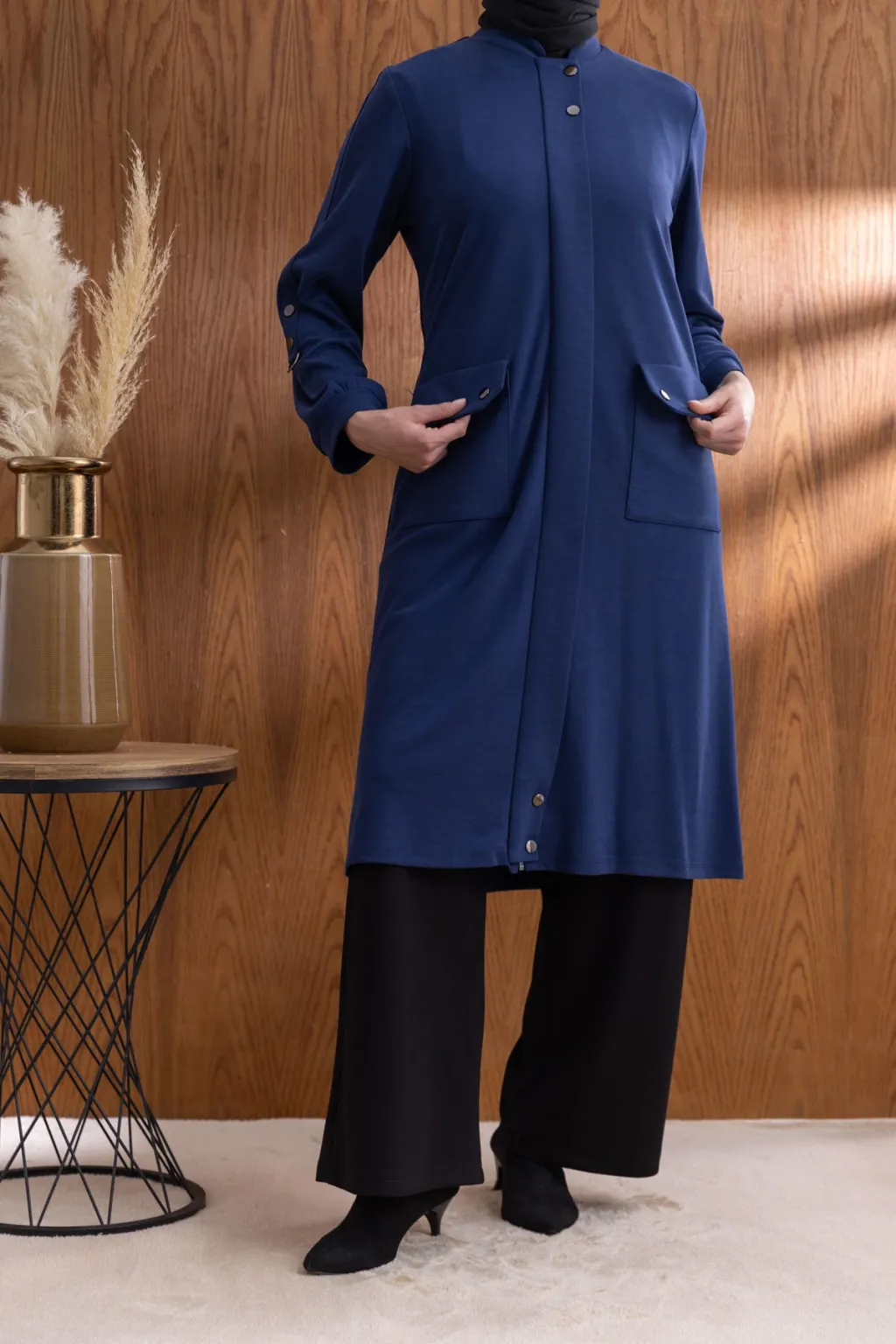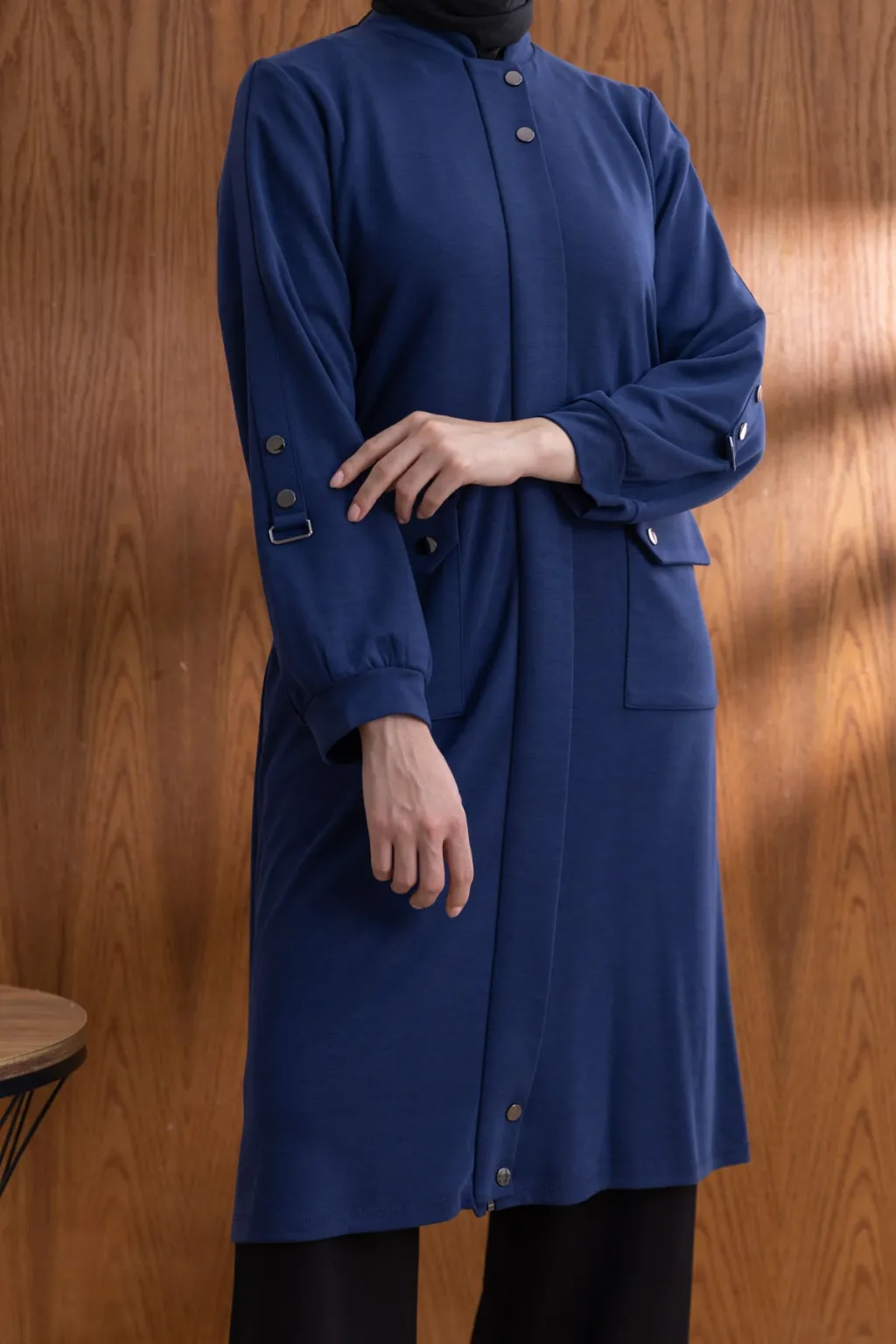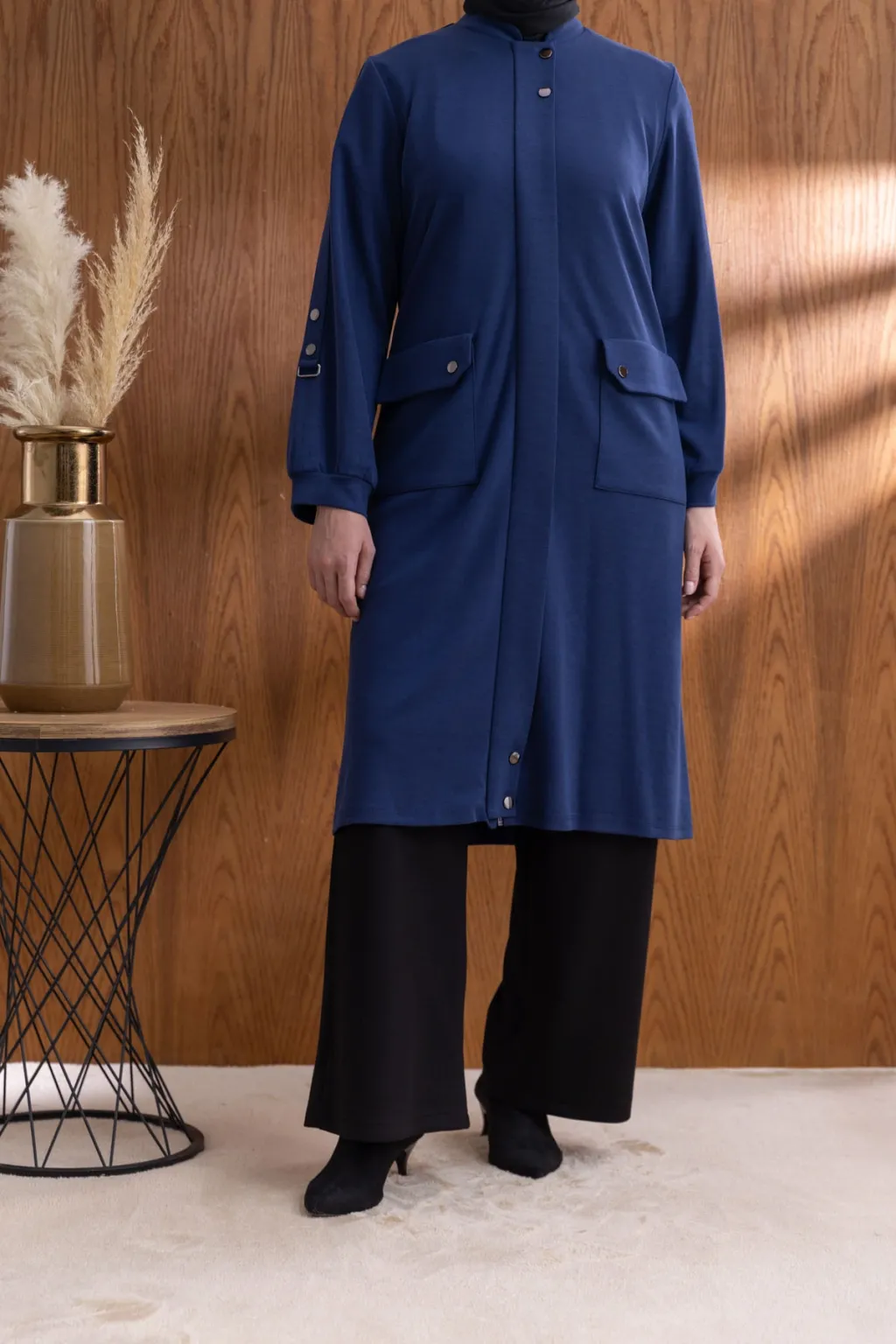ÖNÜ ÇITÇITLI KAPÜŞONLU GİYÇIK - LACİVERT - (Asorti: 46-52)