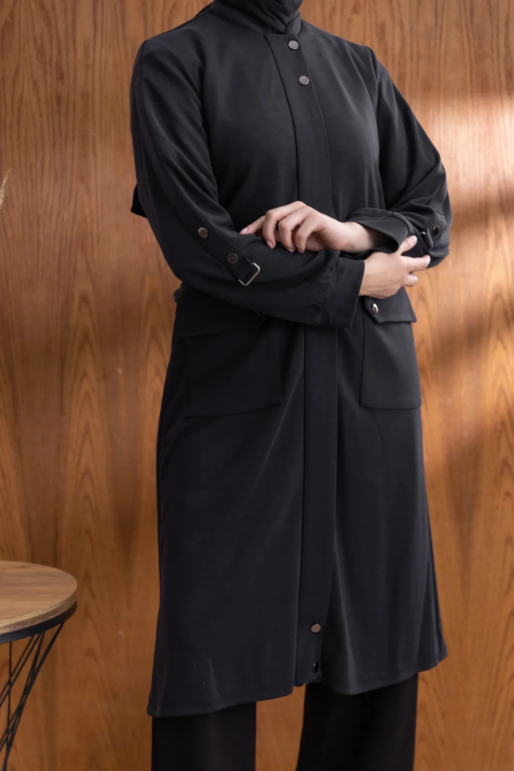 KAPÜŞONLU RİBANA VE ALLER DETAYLI GİYÇIK - SİYAH - (Asorti: 46-52)