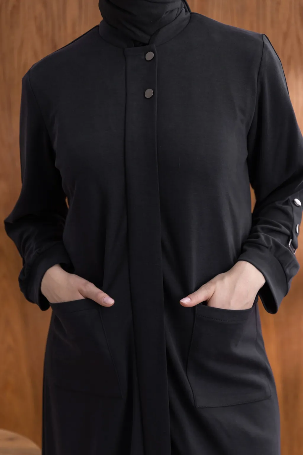 ÖNÜ ÇITÇITLI KAPÜŞONLU GİYÇIK - SİYAH - (Asorti: 46-52)