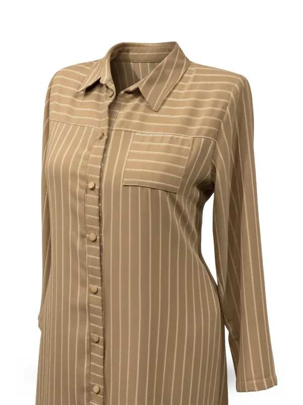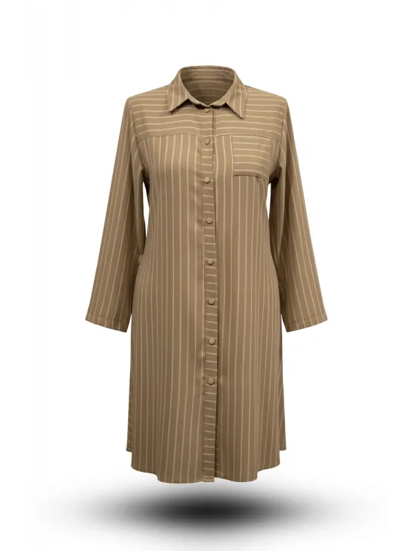 HESNA 5311 ÇİZGİLİ TUNİK - BEJ - (Asorti: 46-52)