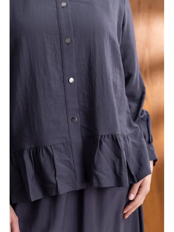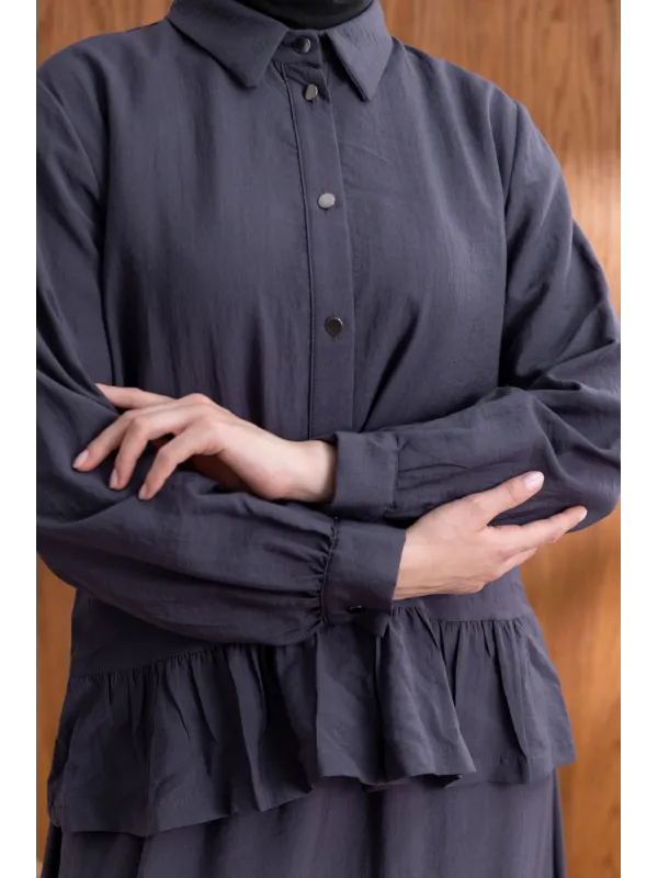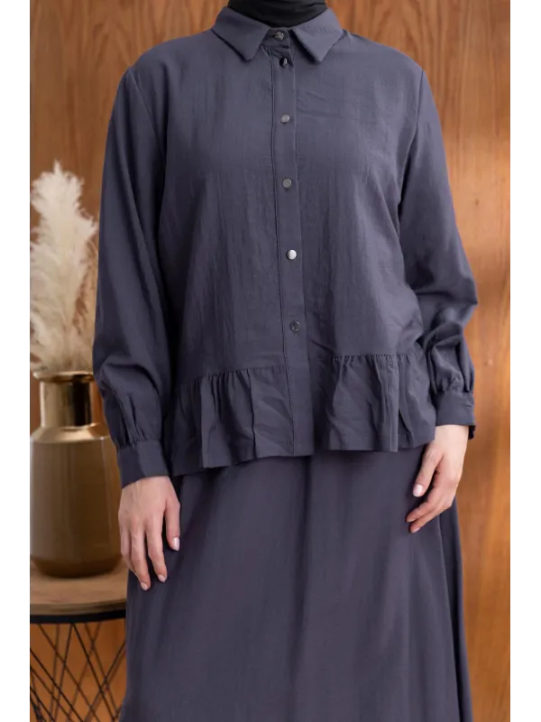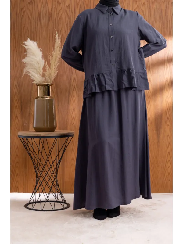FIRFIR DETAYLI GÖMLEK YAKA ETEKLİ TAKIM - ANTRASİT - (Asorti: 46-52)