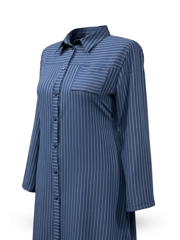 HESNA 5311 ÇİZGİLİ TUNİK - İNDİGO - (Asorti: 46-52)