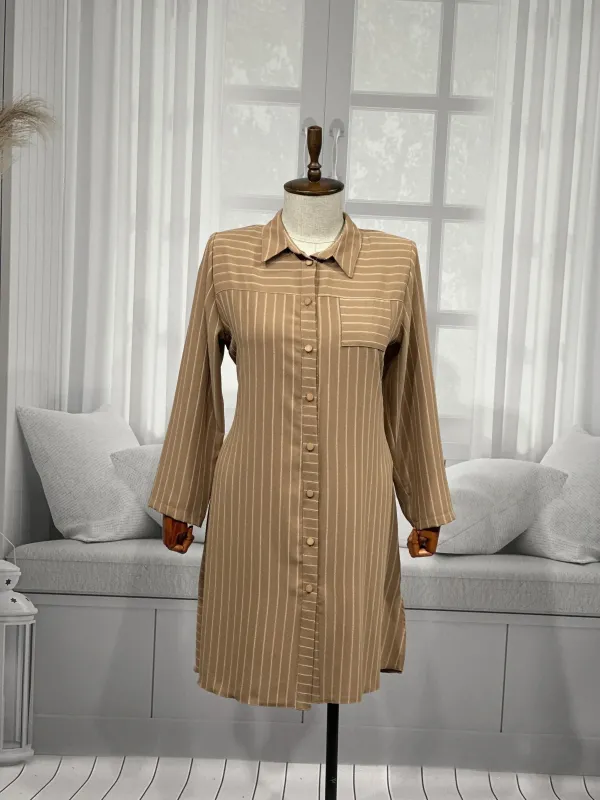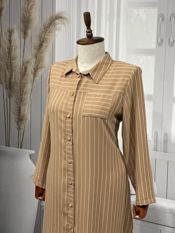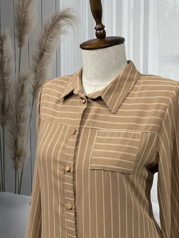 HESNA 5311 ÇİZGİLİ TUNİK - BEJ - (Asorti: 46-52)