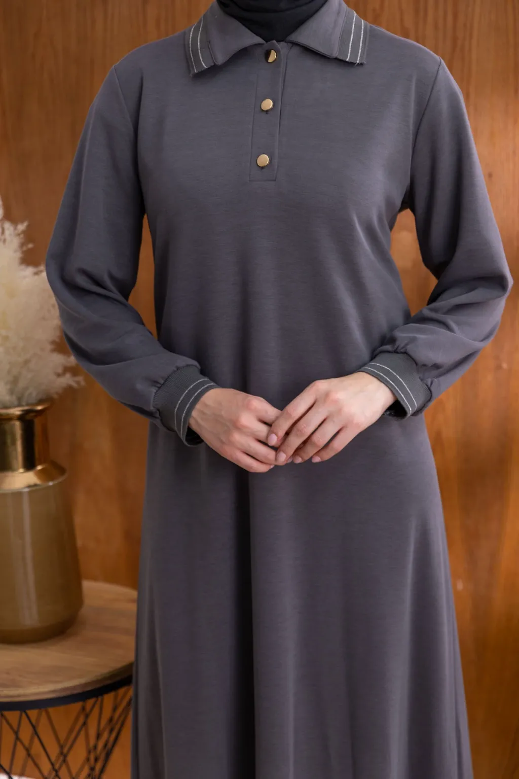 Yakası Ve Manşeti Ribanalı Elbise - Antrasit - (asorti: M-xxl)